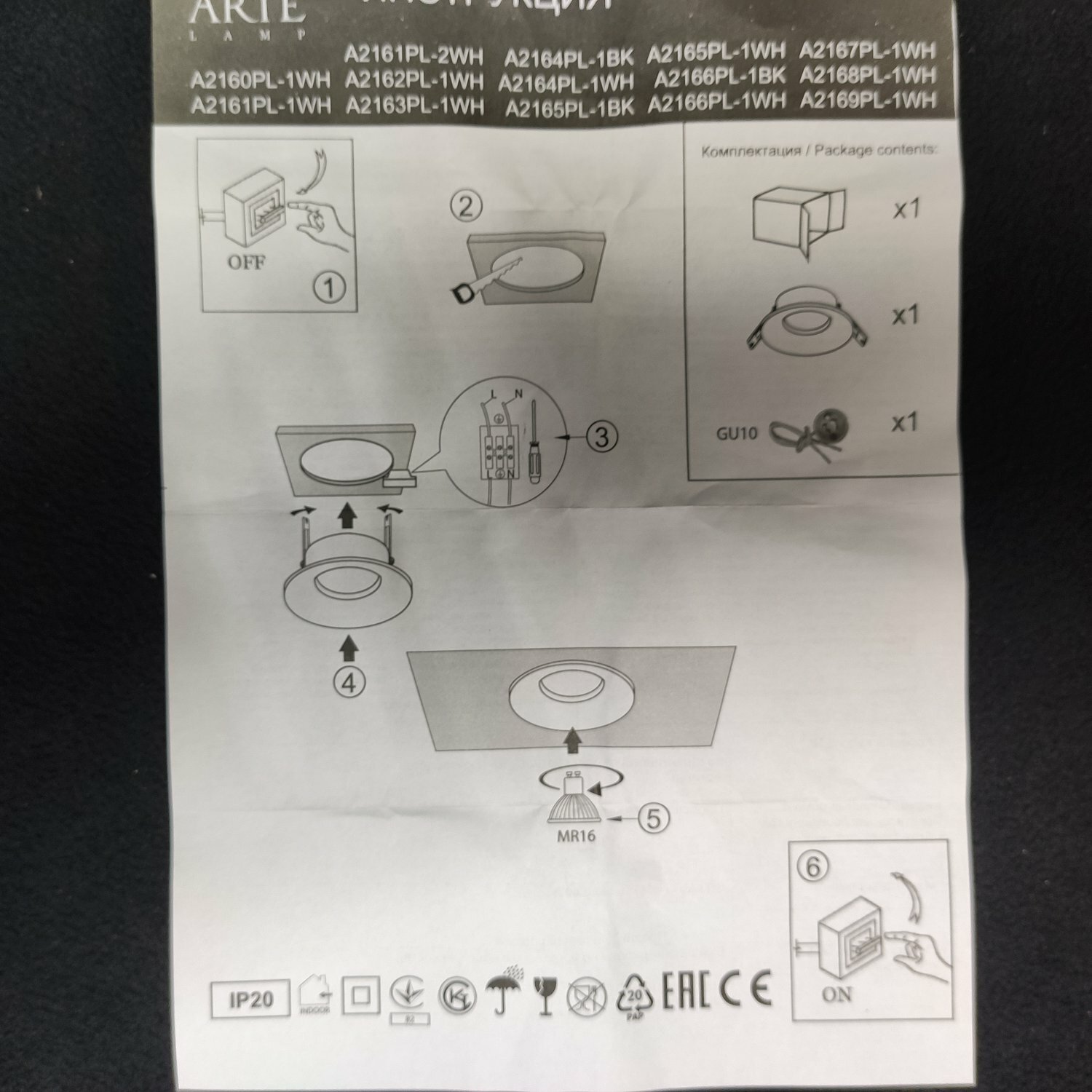 | Комплектация | Встраиваемые светильники Arte Lamp A2162PL-1WH |