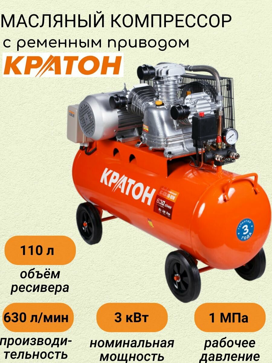 Масляный компрессор с ременным приводом Кратон AC-630-110-BDW 3 01 01 041 интересное:
