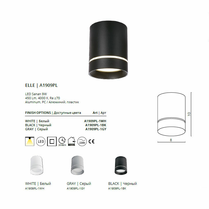 Светильник накладной ARTELAMP A1909PL-1BK 9W 4000K