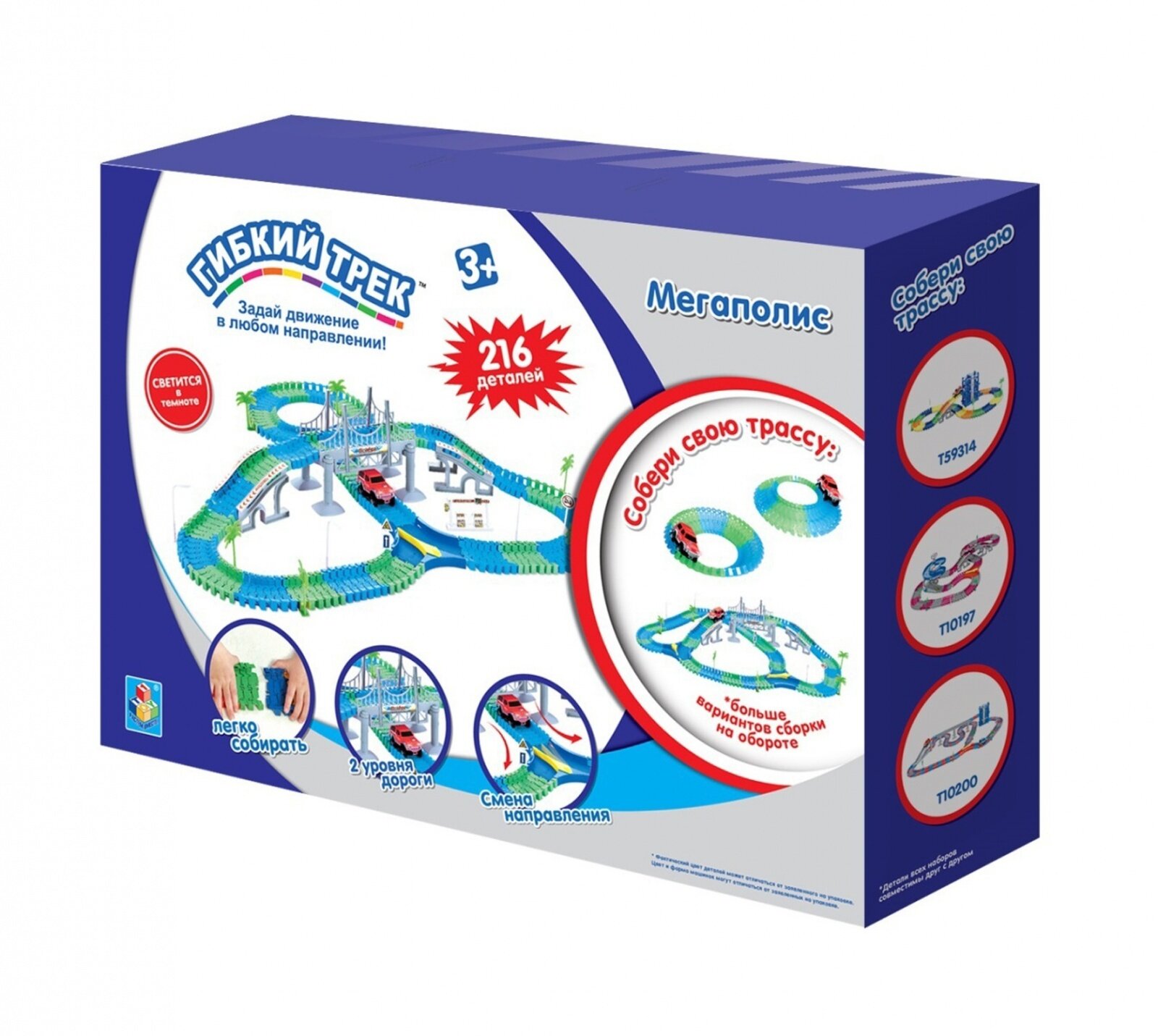 Игровой набор 1TOY Гибкий трек "Мегаполис" 216 деталей интересное: