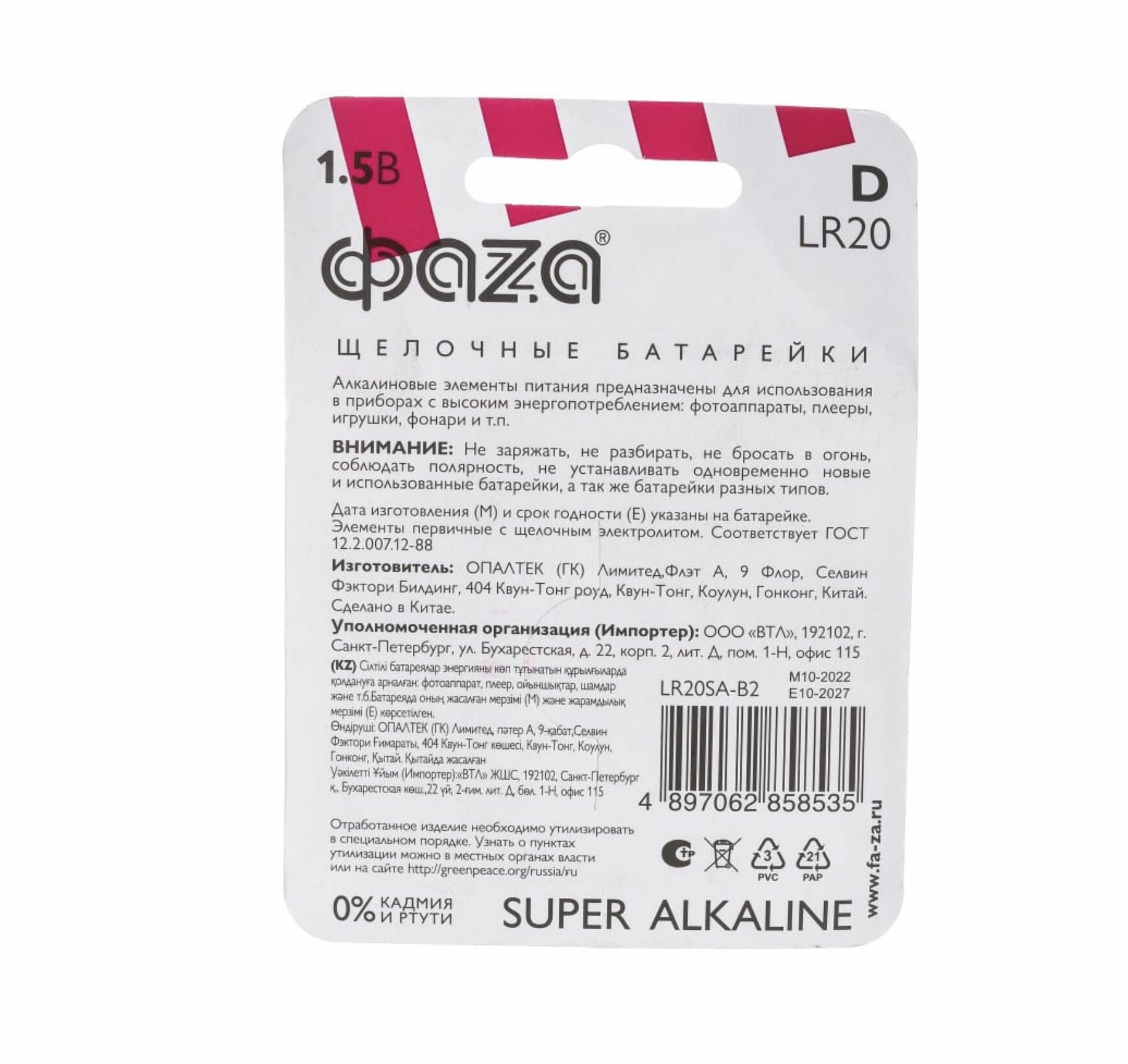Ниже Вы можете прочитать отзывы на Батарейки алкалиновые ФАZА SUPER ALKALINE типоразмера "D" (LR20) 2 шт. (LR20SA-B2), ознакомится с подробными характеристиками, посмотреть интересные обзоры и фотографии на Батарейки алкалиновые ФАZА SUPER ALKALINE типоразмера "D" (LR20) 2 шт. (LR20SA-B2).