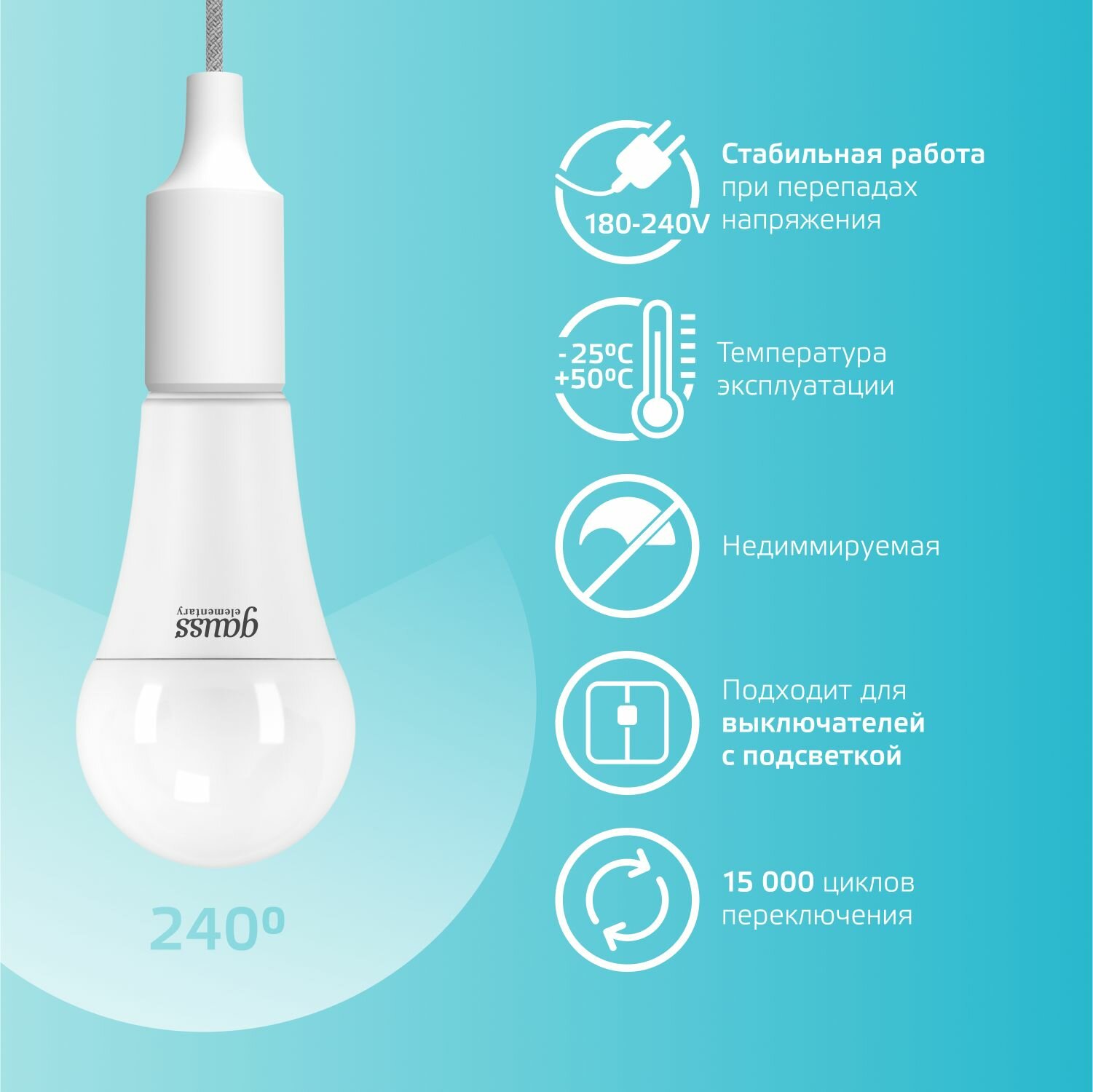 СохранитьЛампочка светодиодная Е27 Груша 35W нейтральный белый свет 4100К Gauss Elementary интересное: