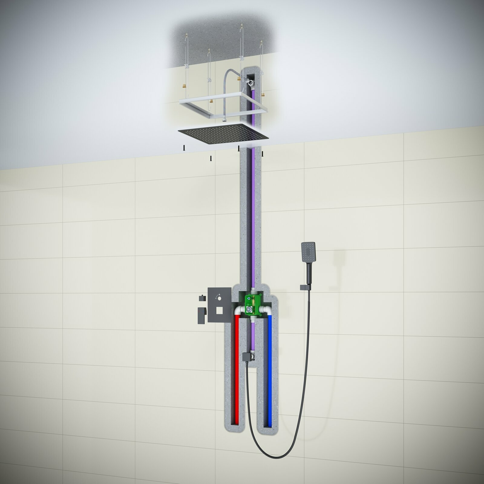 | Комплектация | Смеситель с монтажной коробкой / скрытого монтажа - 1 шт. / ручная лейка 3-х режимная (пластик) - 1 шт. / держатель ручной лейки (пластик) - 1 шт. / декоративная накладка смесителя (латунная) - 1 шт. / ручка дивертора - 1 шт. / шланг душа 1,5 м (латунный) - 1 шт. / отвод из стены - 1 шт. / тропический душ / потолочный (латунный) с установочной коробкой - 1 шт. / подвесные кронштейны (комплект) - 1 шт. / подводка к тропической лейке 1 м - 1 шт. / инструкция - 1 шт. |