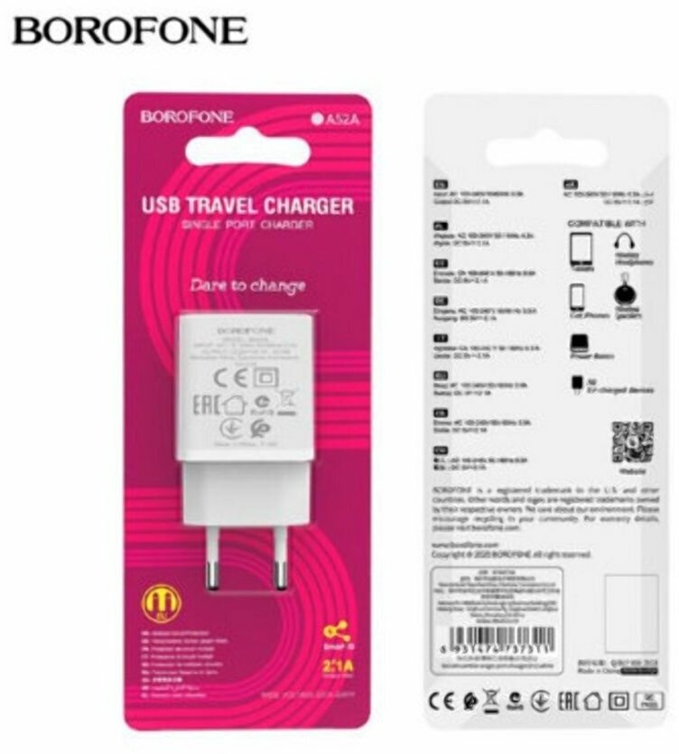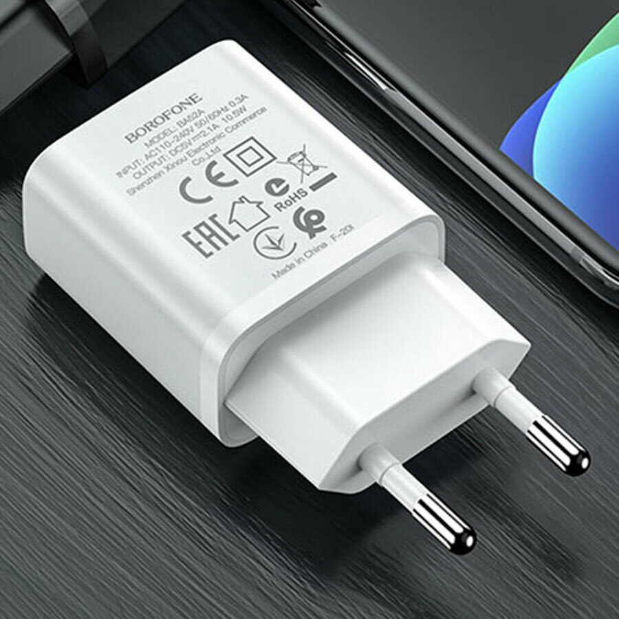 Адаптер СЗУ-USB 2.1A Borofone BA52A бел