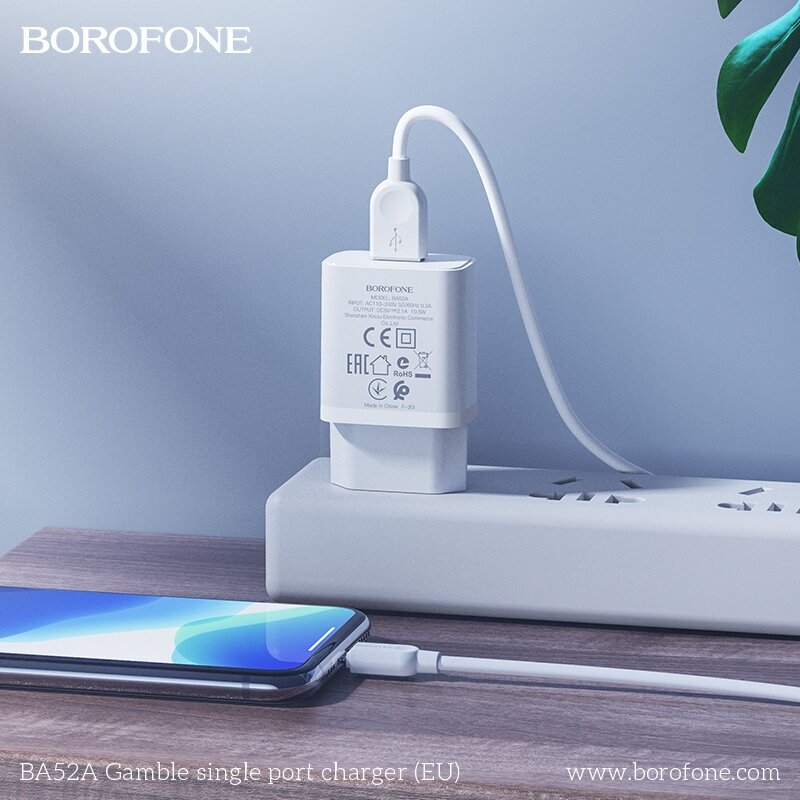 Купить Сетевое зарядное устройство BOROFONE BA52A Gamble 1xUSB, 2.1A, белый