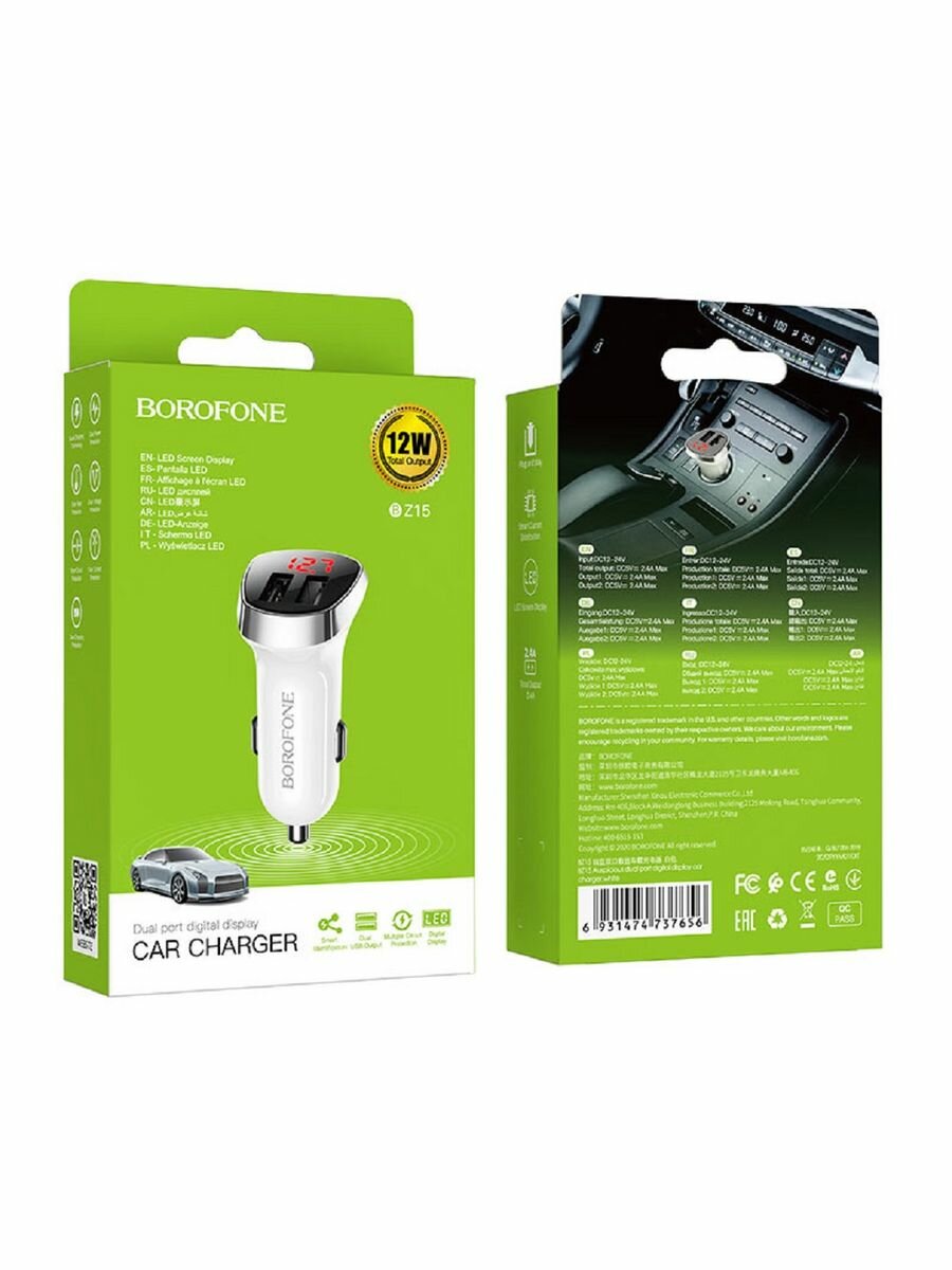 Автомобильное зарядное устройство с вольтметром borofone BZ15 (белый)