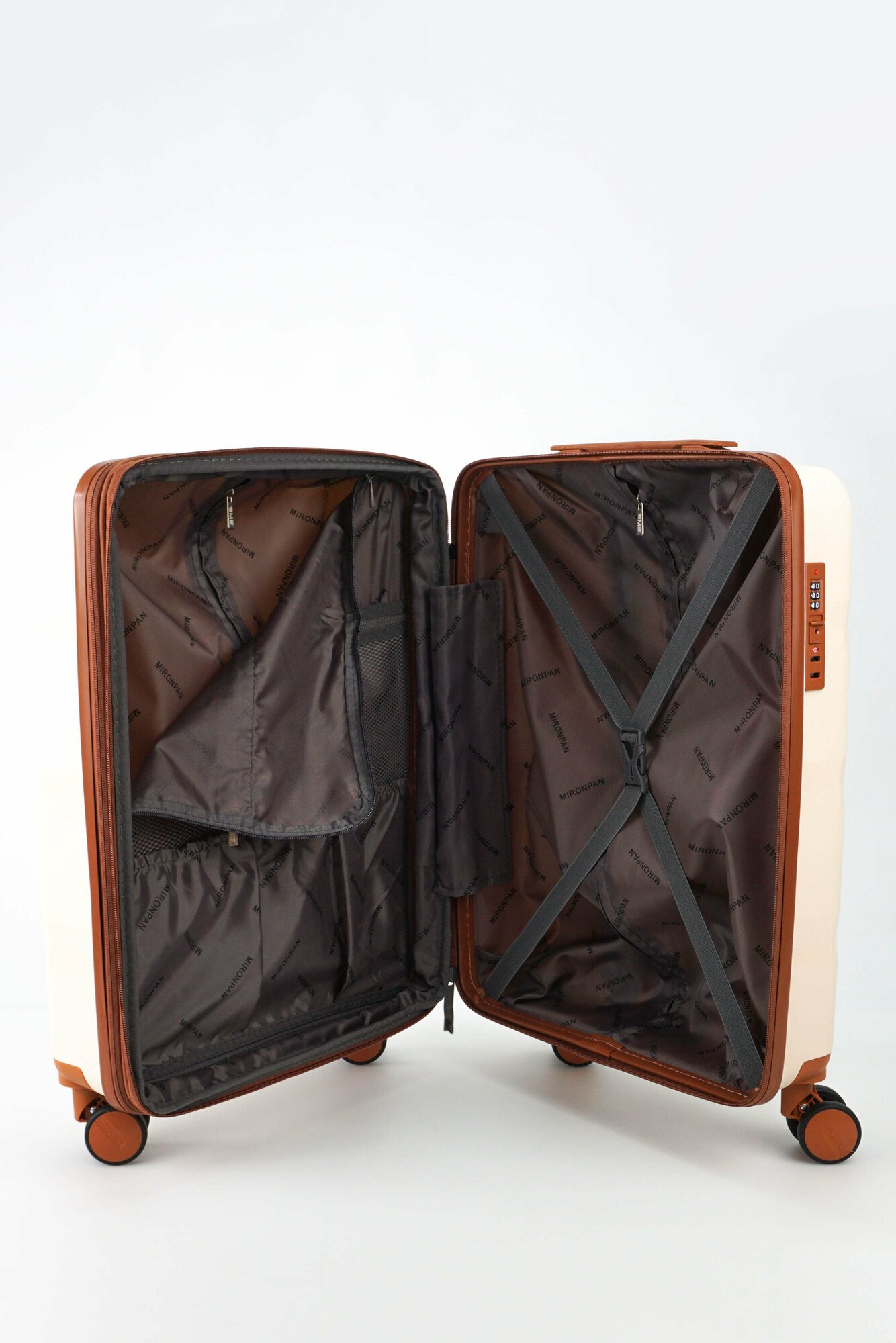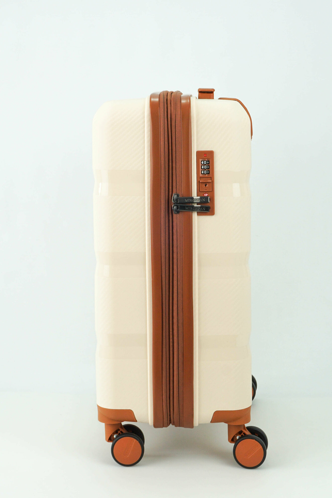 Чемодан Sweetbags средний из полипропилена с расширением на 4-х колесах с TSA замком (3 гориз. полосы) бежевый с коричневым M+