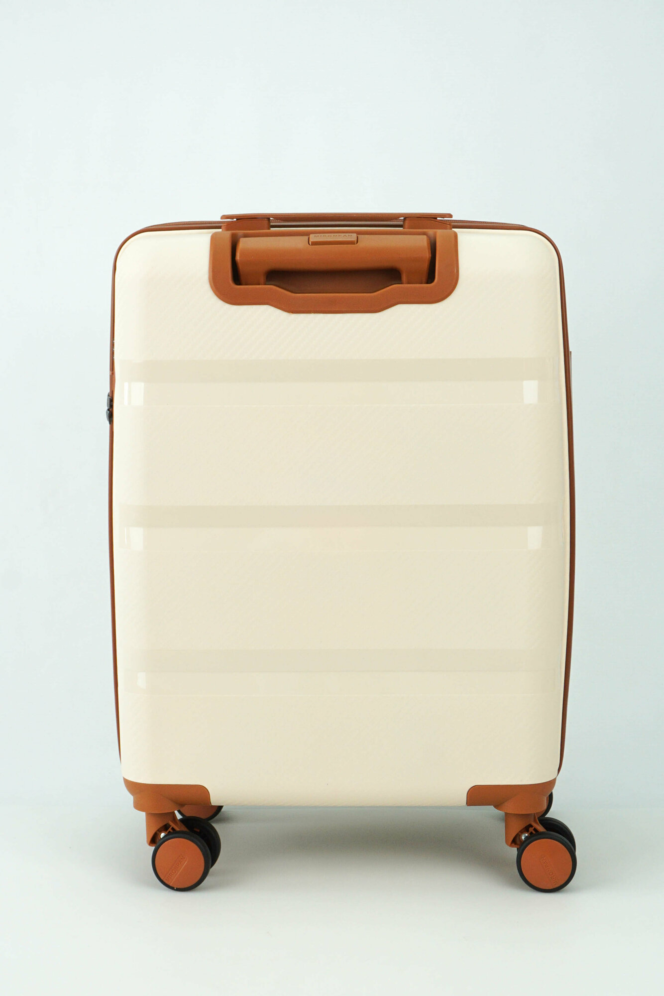 Купить Чемодан Sweetbags маленький (ручная кладь) из полипропилена с расширением на 4-х колесах с TSA замком (3 гориз. полосы) бежевый с коричневым S