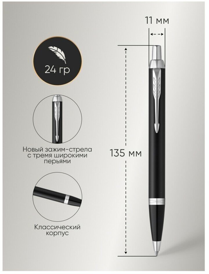 Шариковая ручка Parker IM Mat Black CT лак матовый, стержень: M, цвет чернил: blue, в подарочной упаковке.