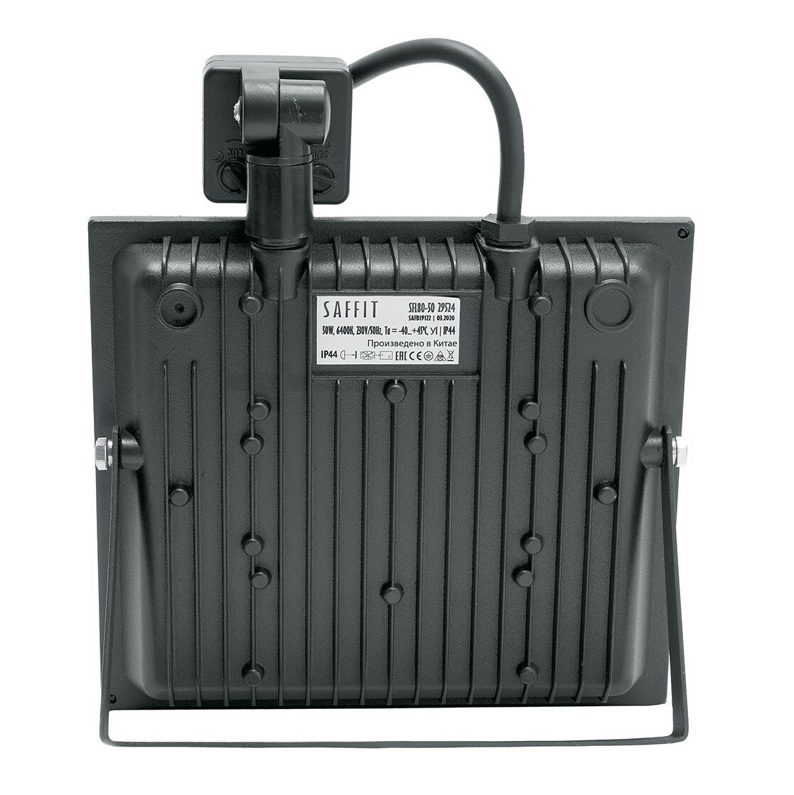 SAFFIT Прожектор светодиодный SFL80-50 с встроенным датчиком 2835SMD 50W 6400K AC220V/50Hz IP65, черный в компактном корпусе 29524