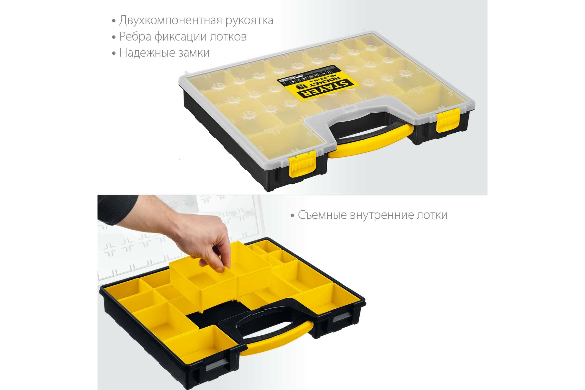 STAYER MULTIMAX, 420 x 330 x 50 мм (16.5″), Пластиковый органайзер со съемными лотками (2-38032) интересное: