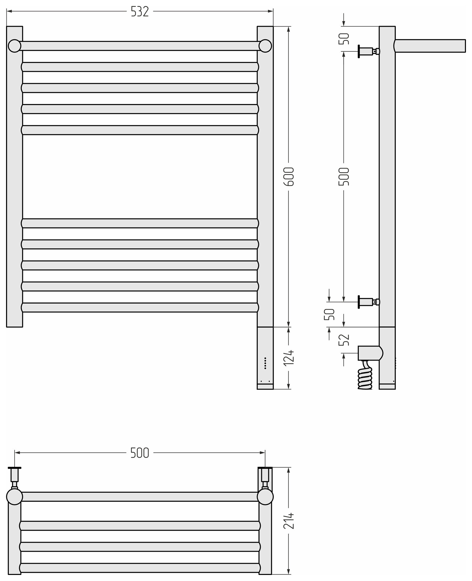 Полотенцесушитель Электрический Тругор Пэк сп 5 П 60х50 черный ВГП