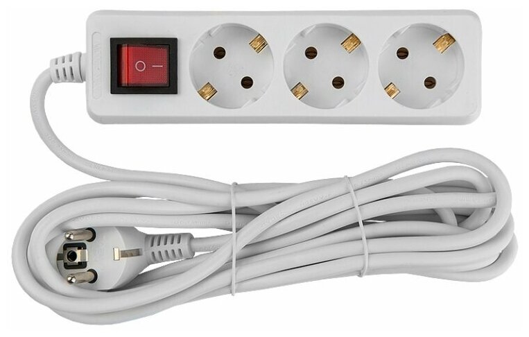 Удлинитель General с заземлением и выключателем, 3 гнезда, 10A, 2200Вт, белый, 3 метра (3х0,75мм) (GES-10-3x075-3-3m-S)