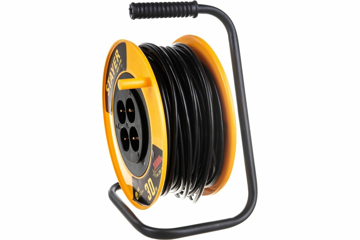 Удлинитель на катушке STAYER 55078-30, 4 розетки, с/з, 16А / 3500 Вт черный 30 м 1.5 м² 4