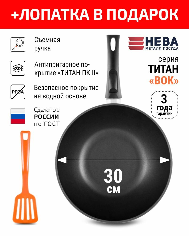 СохранитьСковорода вок 30см со съемной ручкой нева металл посуда с антипригарным покрытием Титан ПК интересное: