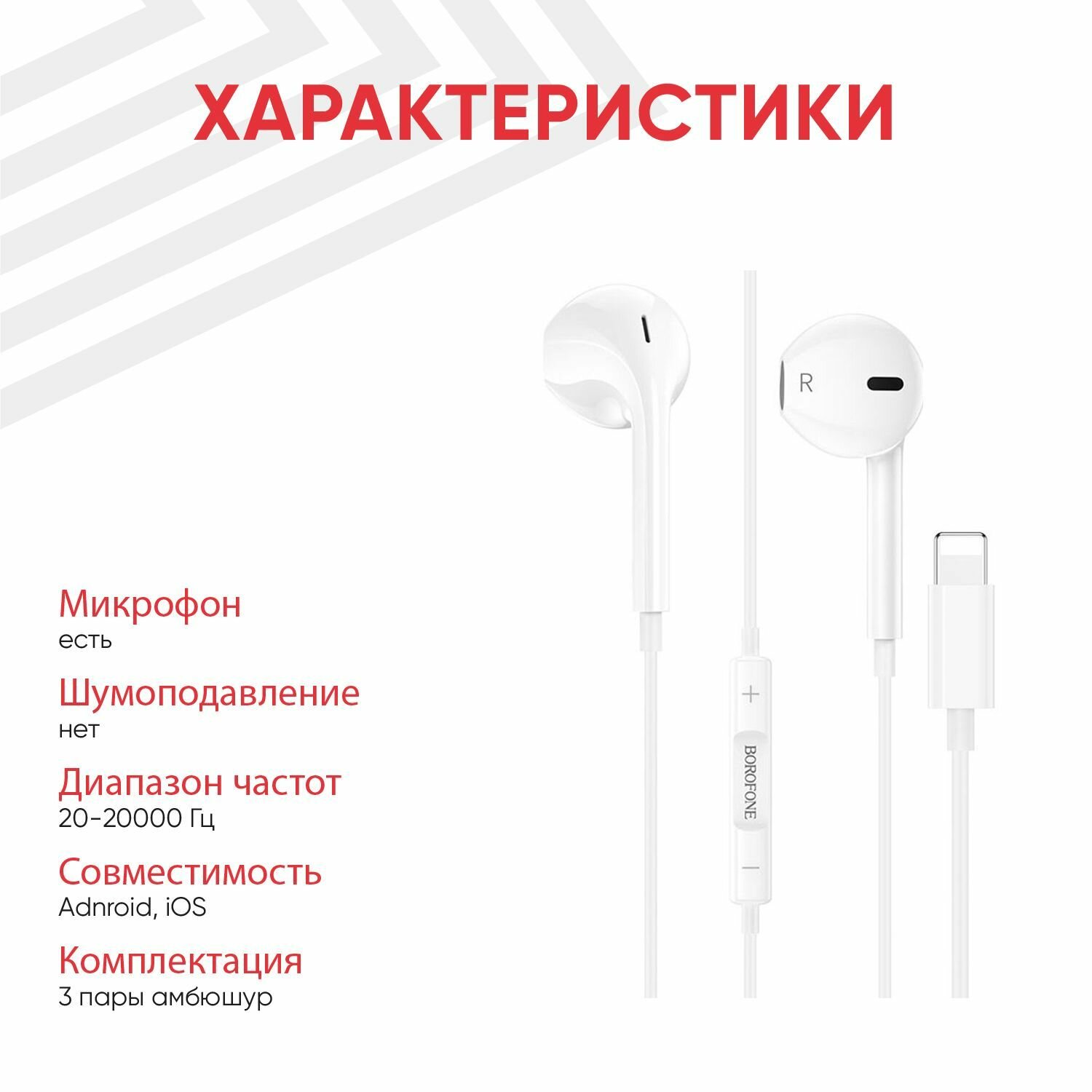 Гарнитура BOROFONE BM56 Original Series Lightning 8-pin, вкладыши, 1.2м (20 шт.) (белый)