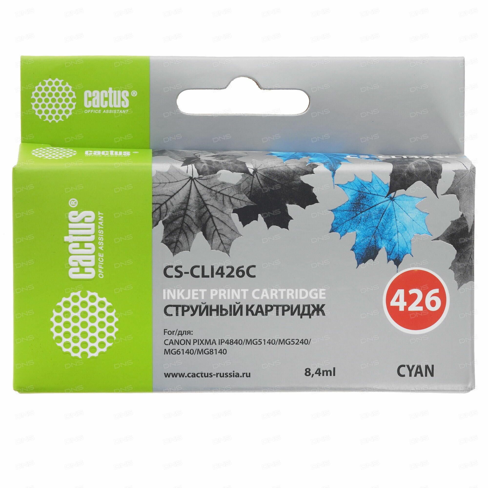 Купить Картридж струйный Cactus CS-CLI426C CLI-426C голубой (8.4мл) для Canon Pixma MG5140/5240/6140/8140/MX884