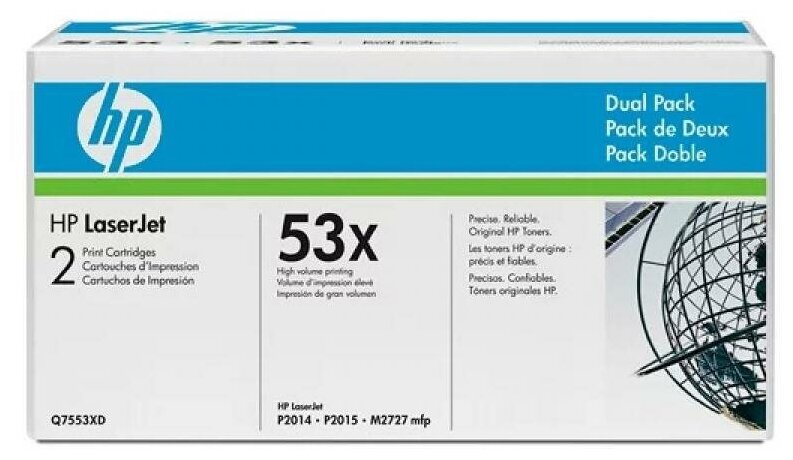 Картридж Q7553ХD для принтера HP LJ P2015 дв-я упак. *, арт. Q7553XD (шт.) оригинальный