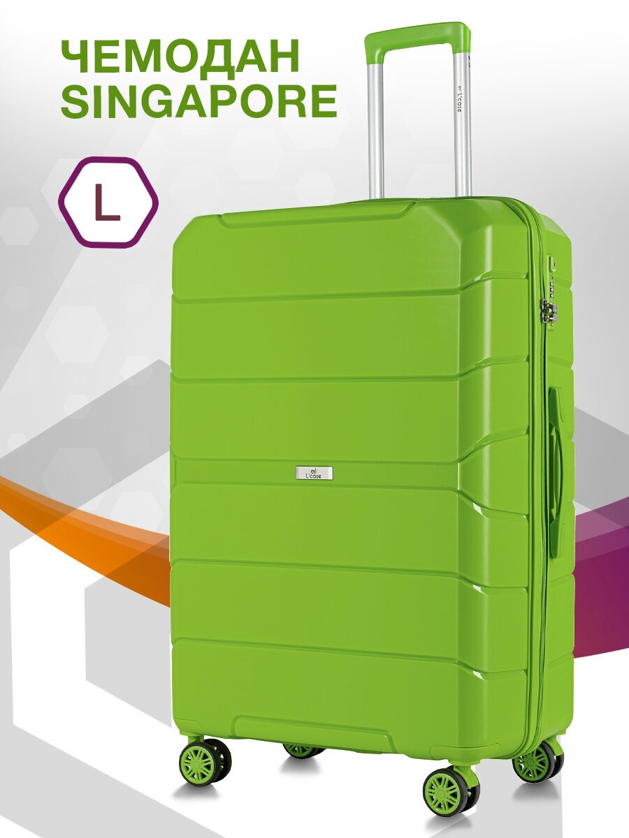 Купить Чемодан на колесах Lcase Singapore, Лаймовый. Большой L, полипропилен. Дорожный чемодан на колесиках для путешествий и поездок.
