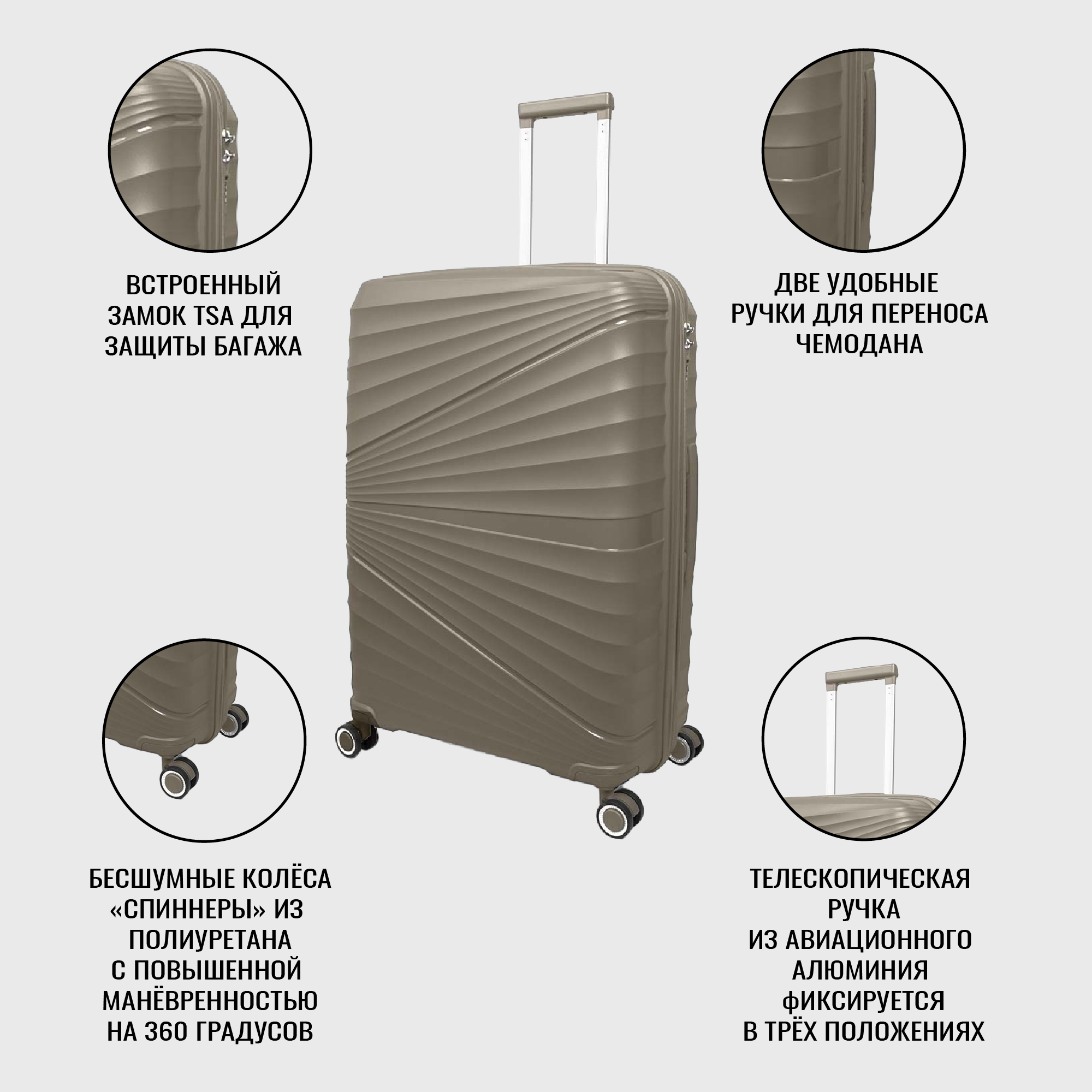 Чемодан на колесах дорожный большой семейный багаж для путешествий мужской l Тевин размер Л 73 см 105 л легкий и прочный полипропилен Серый лучи