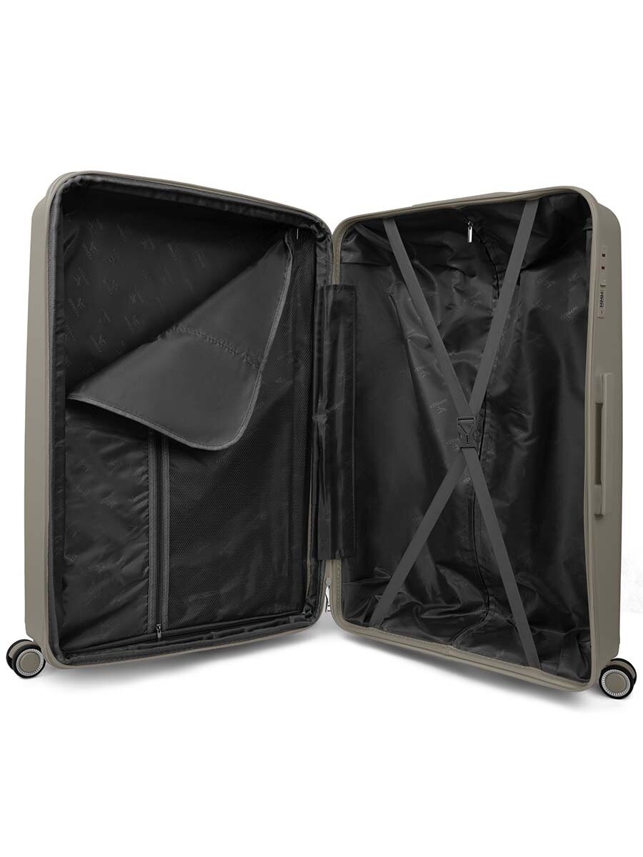 Чемодан на колесах дорожный большой семейный багаж для путешествий l TEVIN размер Л 73 см 105 л легкий 3.8 кг прочный полипропилен Бежевый темный