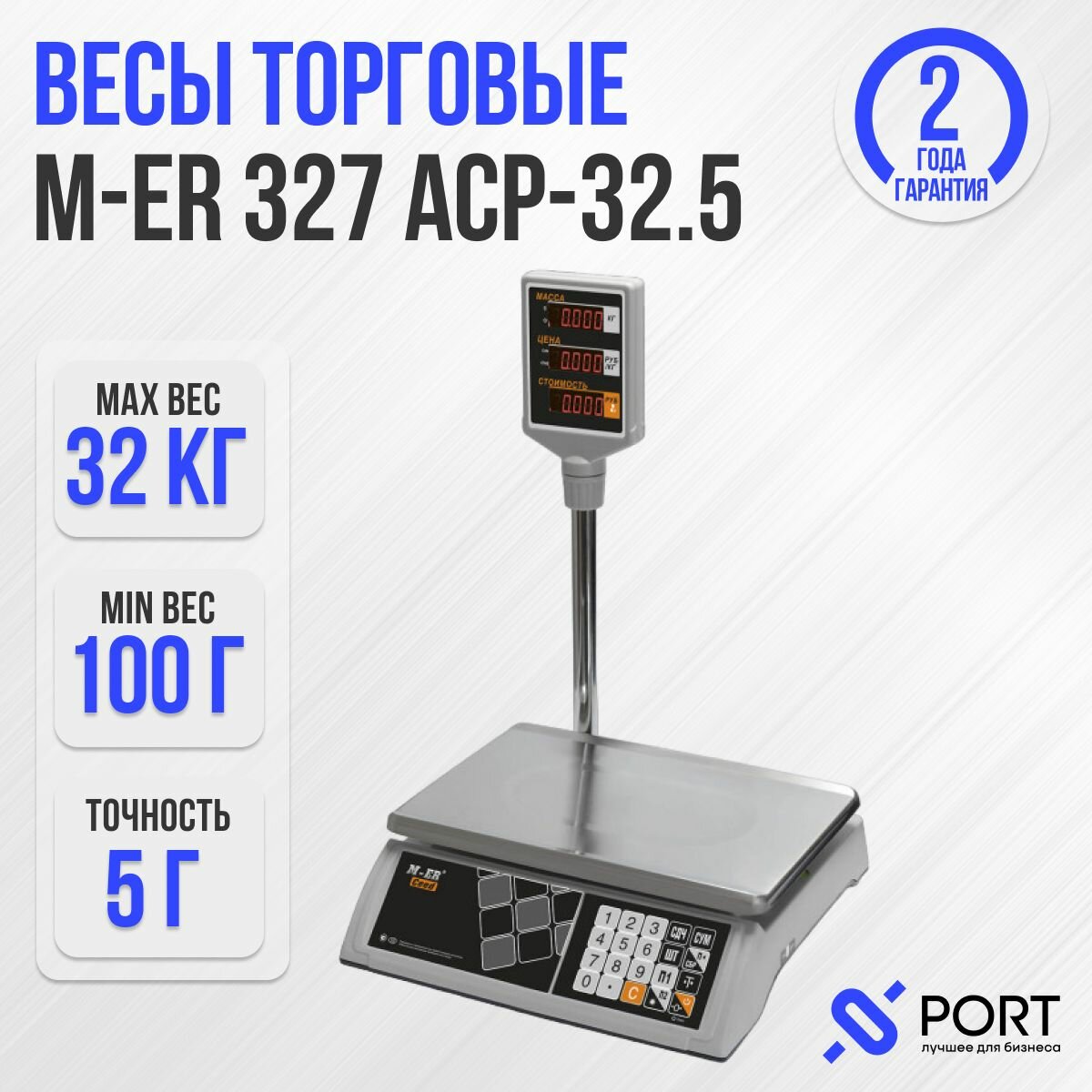 Весы электронные MERTECH M-ER 327 ACP-32.5 до 32кг LED, 5г, со стойкой