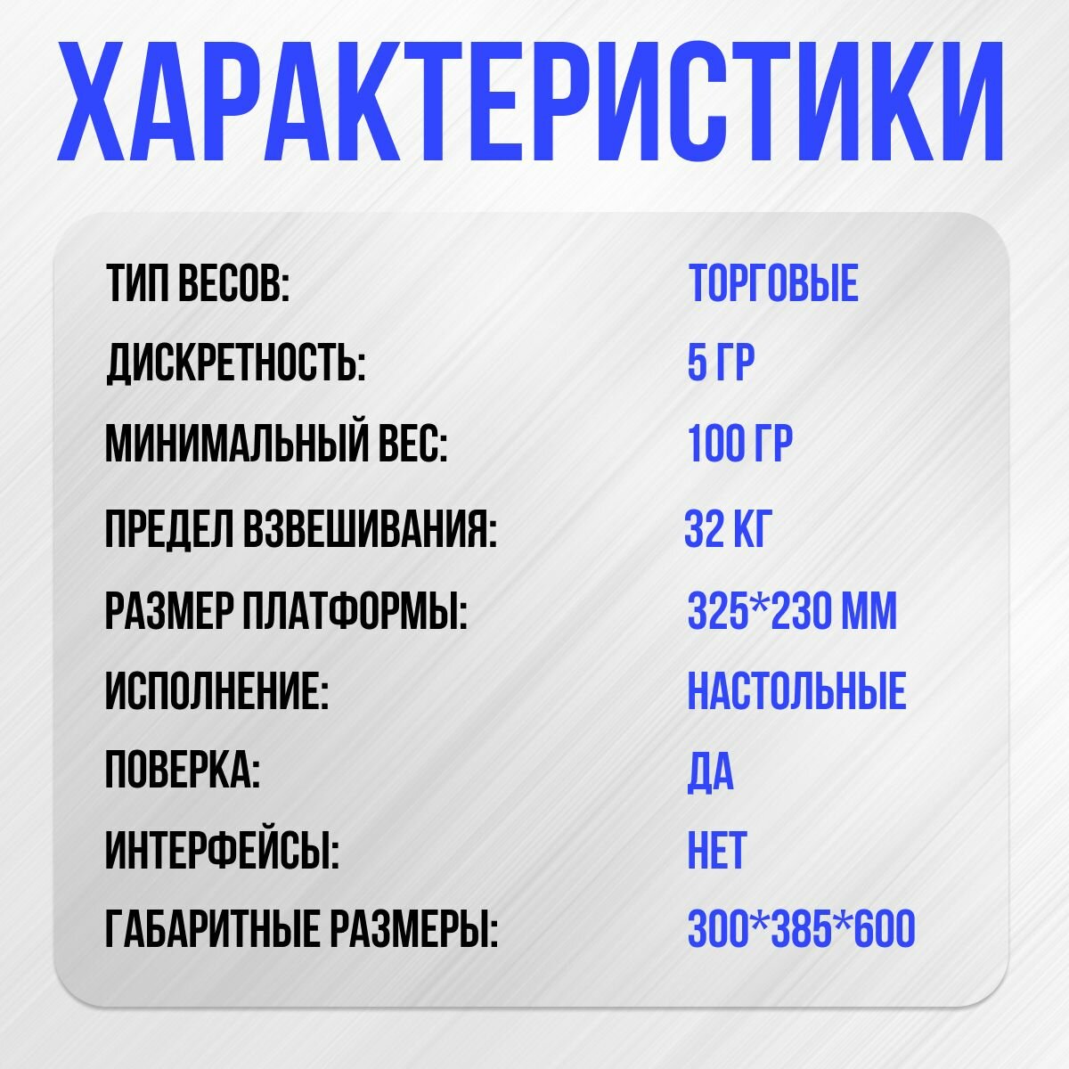 | Тип весов | торговые |