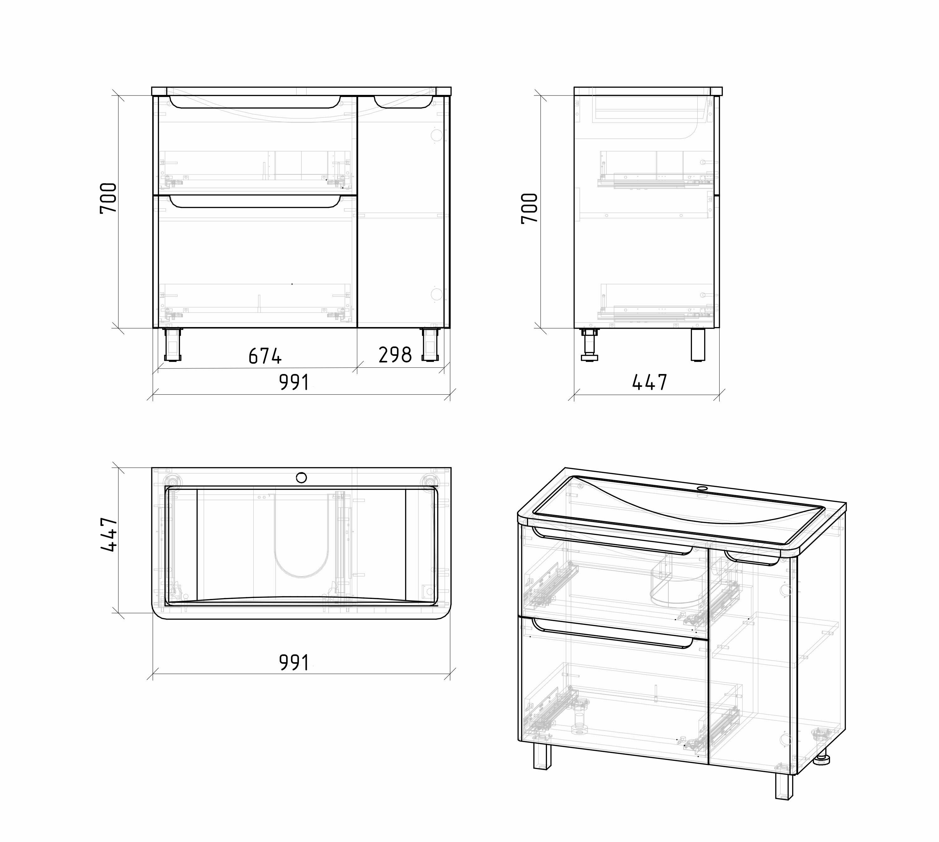 Тумба напольная с 2 ящиками Grossman АДЕЛЬ-100 см белая С раковиной интересное: