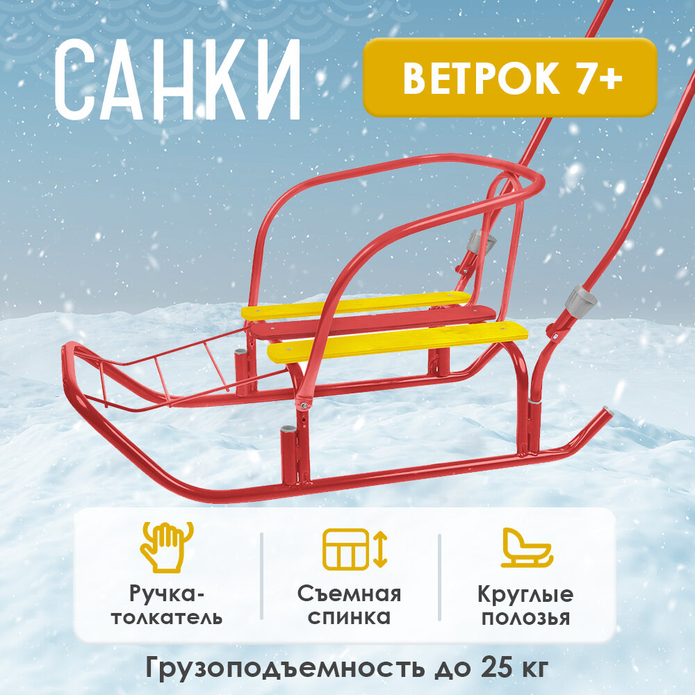 Санки металлические с толкателем алый Ветерок-7 Nika интересное: