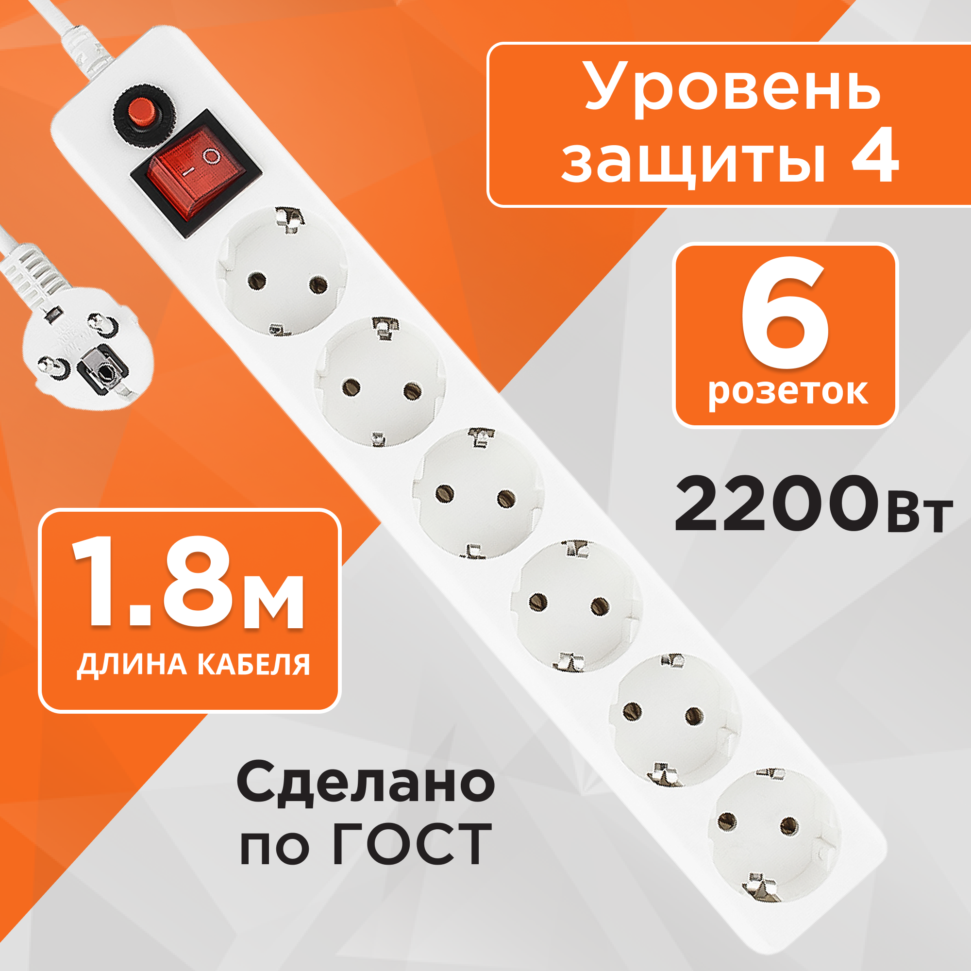 Сетевой фильтр гарнизон 6 розеток 1.8м белый