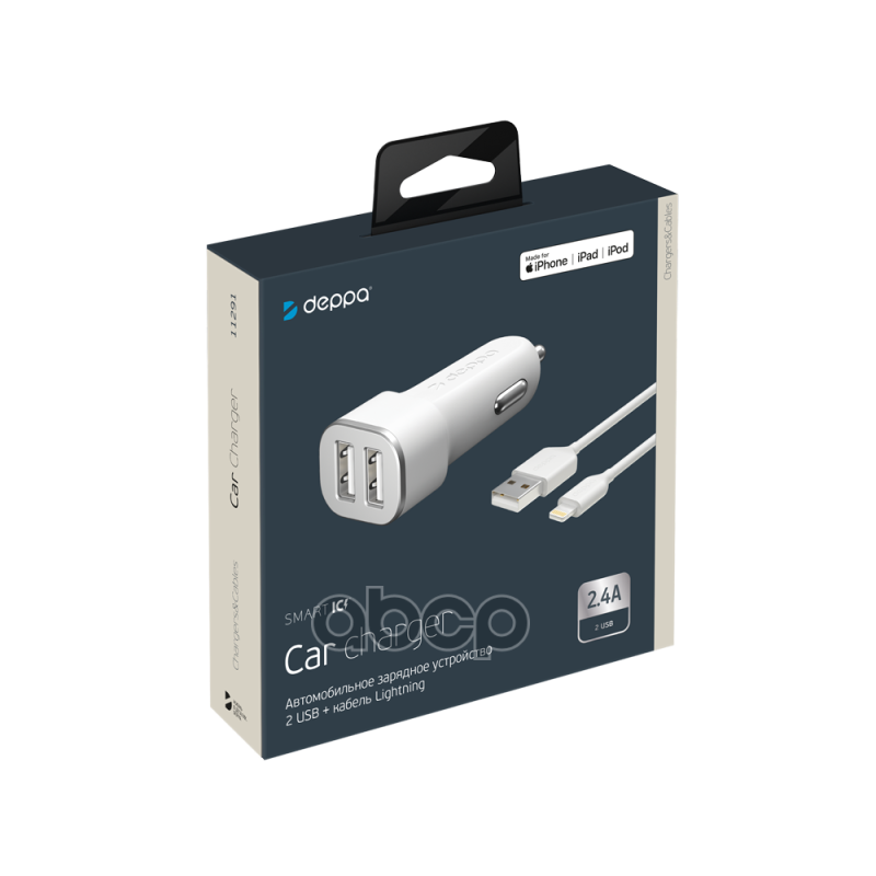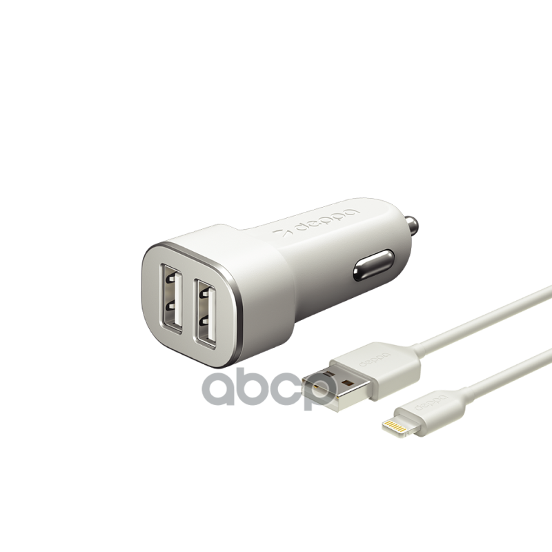 Автомобильное зарядное устройство 2 USB 2.4А + кабель Lightning, MFI, белый, Deppa 11291 интересное:
