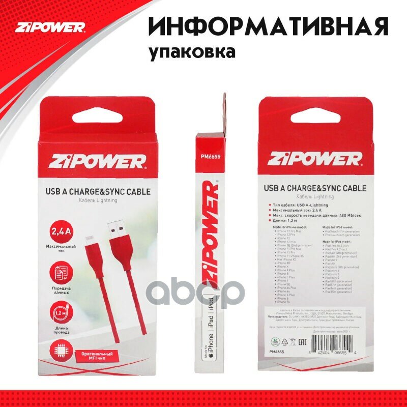 Pm6655_кабель Универсальный Usb-Lightning Mfi Чип Zipower Pm6655 1М Для Зарядки Моб Устройств ZiPOWER арт. PM6655