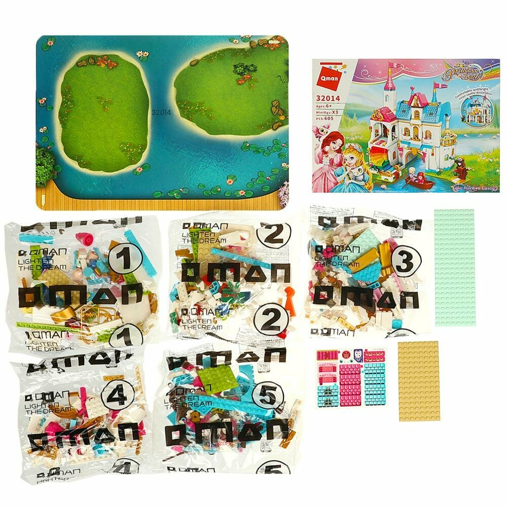 Qman Конструктор Qman Принцесса Лиа Замок на озере Радуги 605 деталей и 3 мини-фигурки 32014
