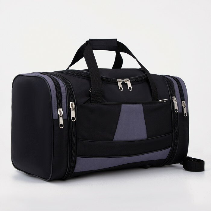 Сумка дорожная на молнии, 3 наружных кармана, длинный ремень, с увеличением, цвет чёрный/серый