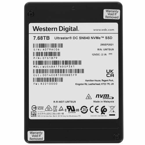 SSD накопитель WD Ultrastar DC SN840 WUS4BA176DSP3X1 7.5ТБ, 2.5", PCIe 3.1 x4, NVMe, U.2 SFF-8639 [0ts1879]
