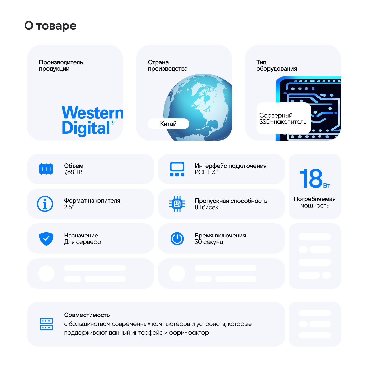 WUS4BA176DSP3X1 7680 ГБ Серверный SSD накопитель WD Ultrastar DC SN840 (WUS4BA176DSP3X1)
