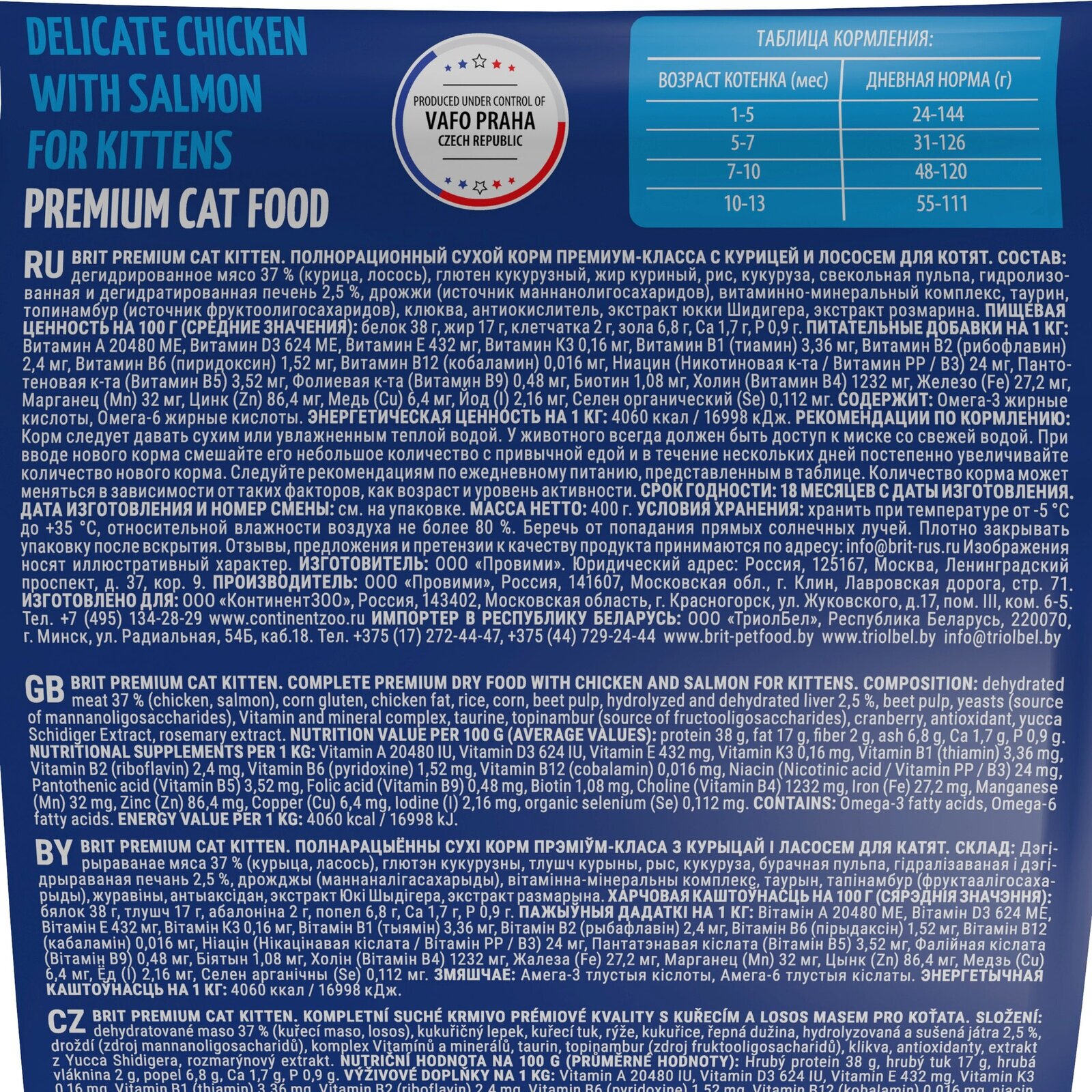 Brit Premium Cat Kitten для котят, беременных и кормящих кошек Курица, 400 г.