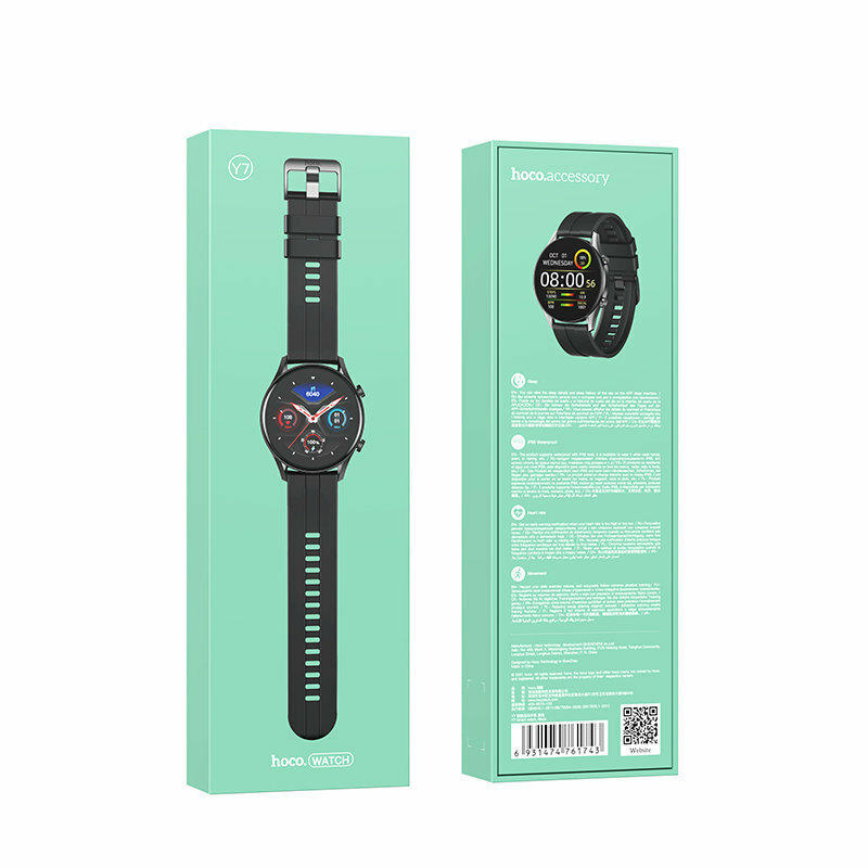 Смарт-часы Hoco Y7, 1.32", 360x360, IP68, BT5.0, 330 мАч, будильник, шагомер, чёрные