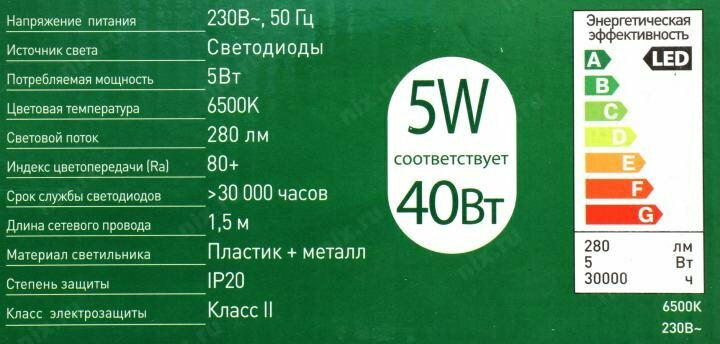 | Мощность | 5 Вт |