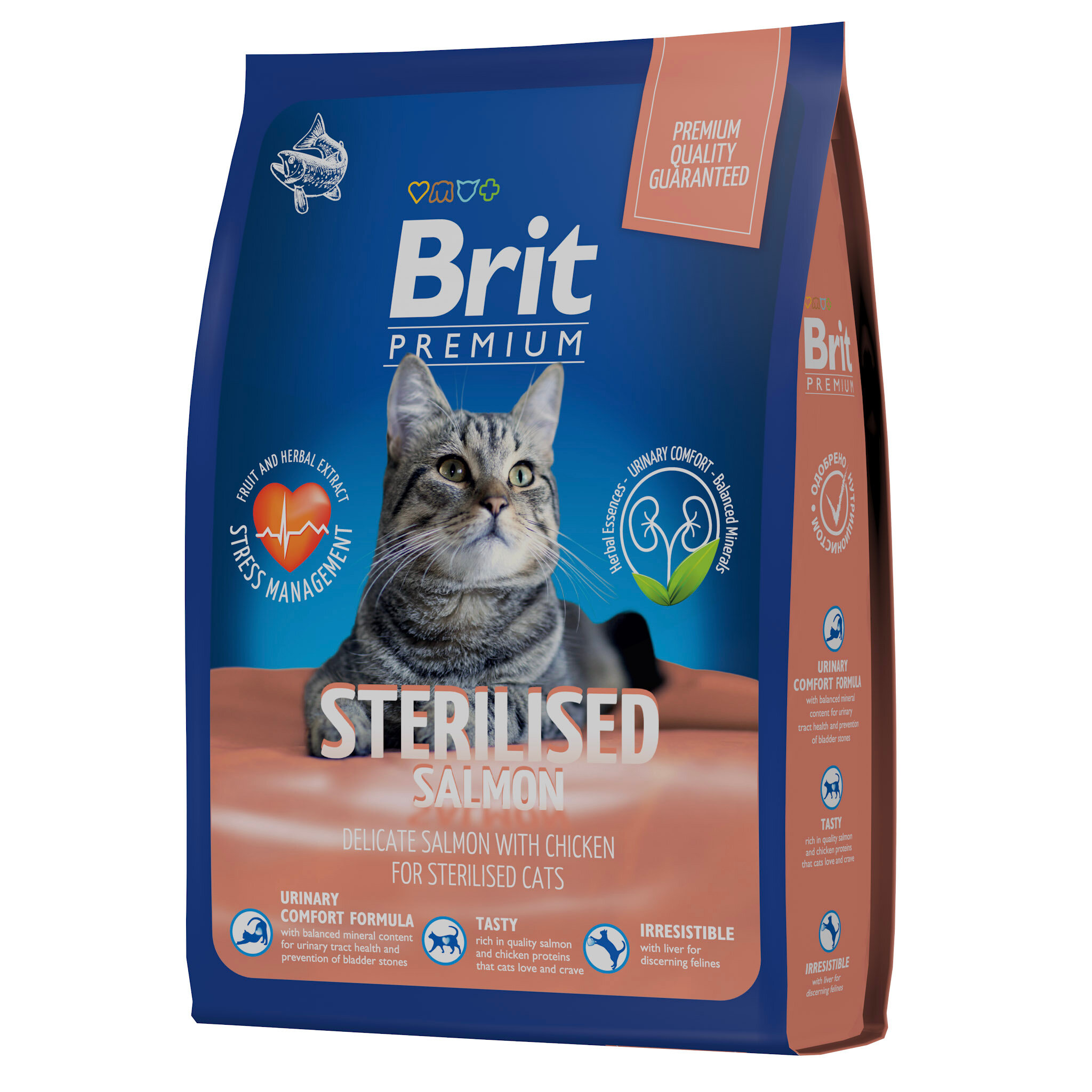 Сухой корм BRIT PREMIUM CAT STERILISED SALMON & CHICKEN для взрослых кастрированных котов и стерилизованных кошек с лососем и курицей (2 кг)
