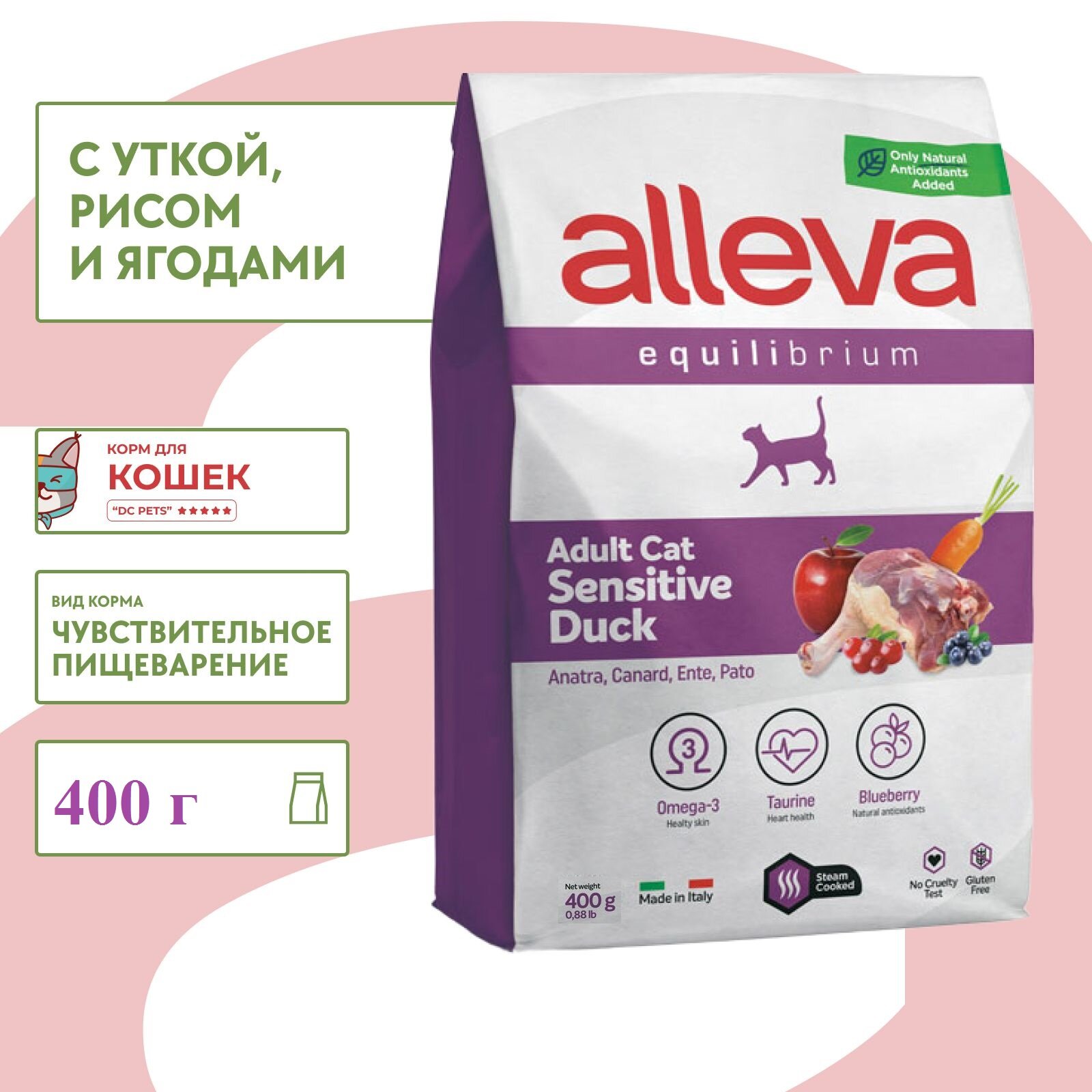 ALLEVA EQUILIBRIUM CAT для кошек Adult Sensitive Duck / взрослых с уткой 0,4 кг 1073 новинка,