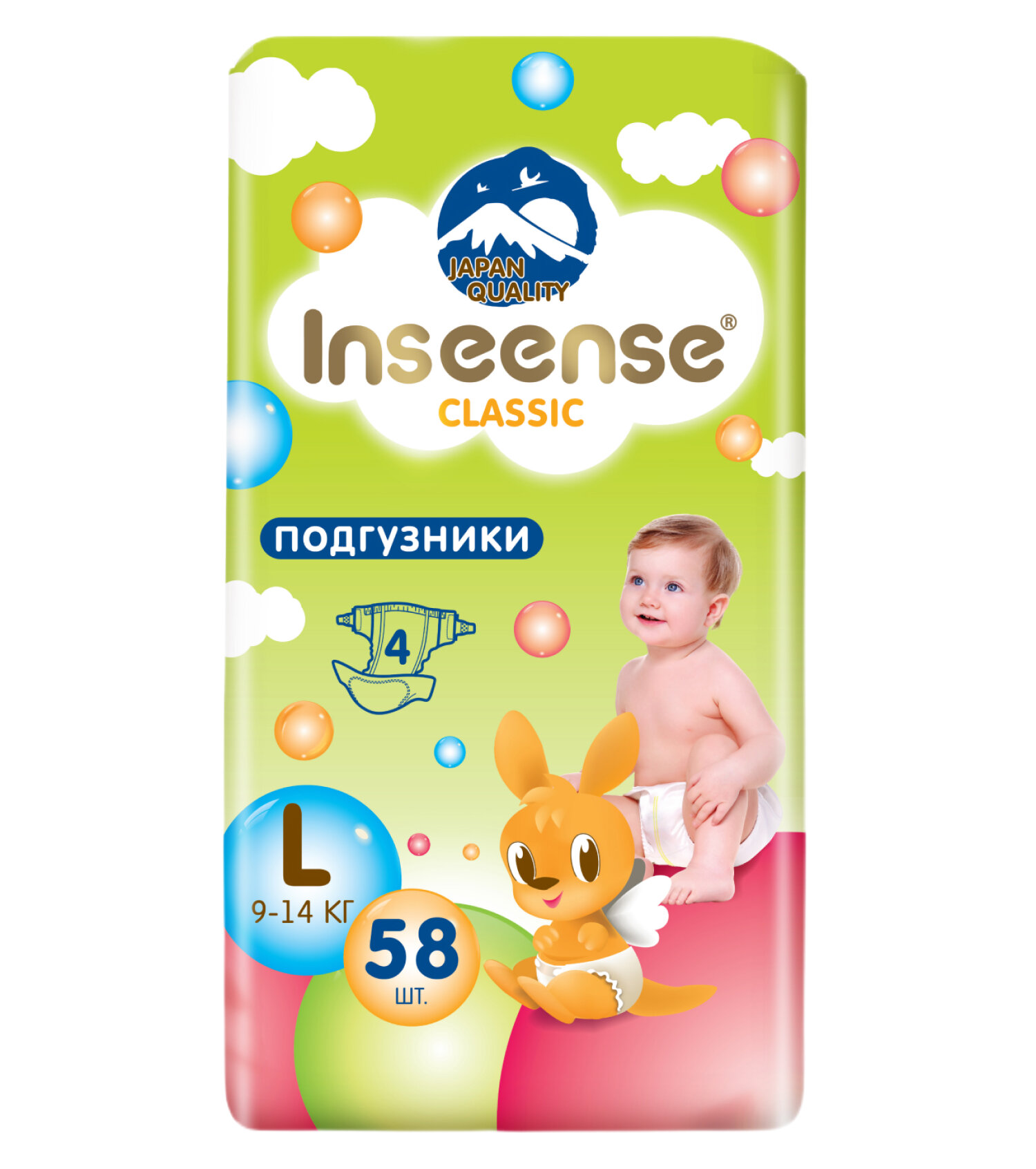 Подгузники Inseense Classic+ L (9-14 кг) 58 шт