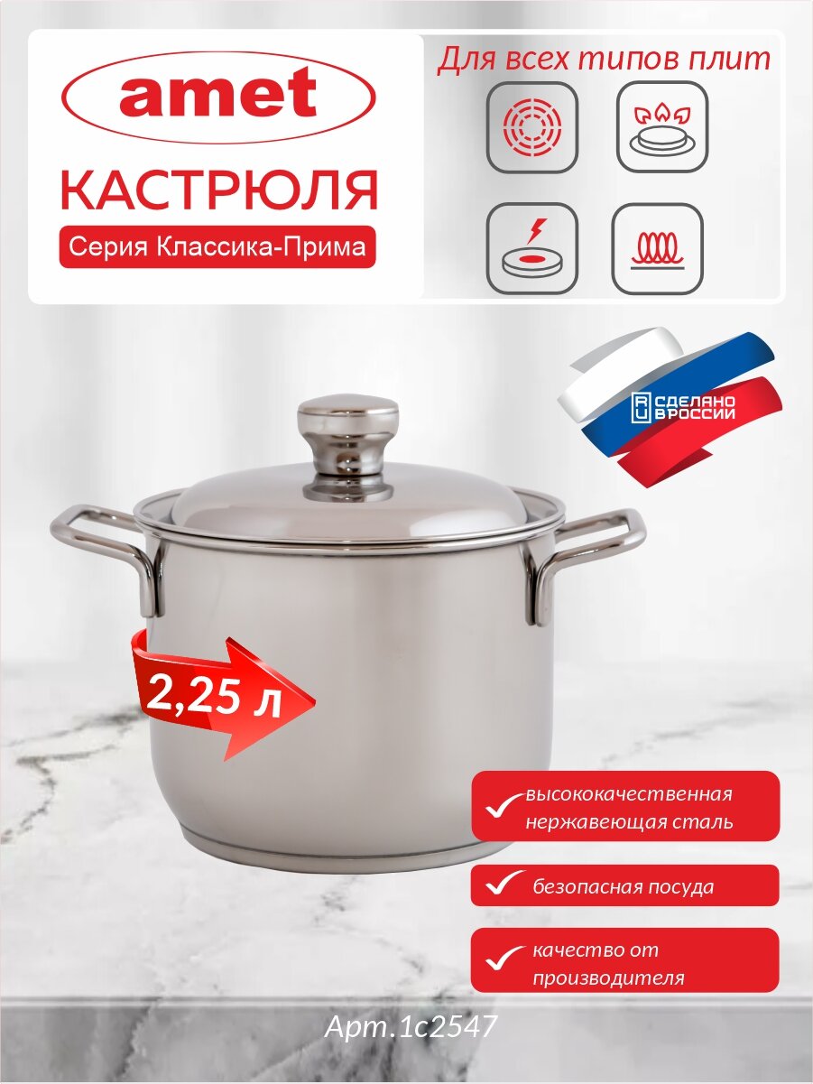 Кастрюля Амет 1с2547 ТРС, с крышкой, 2,25л