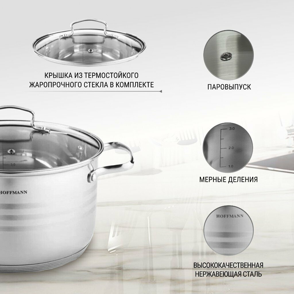 Кастрюля HOFFMANN, Нержавеющая сталь, 3.1 л