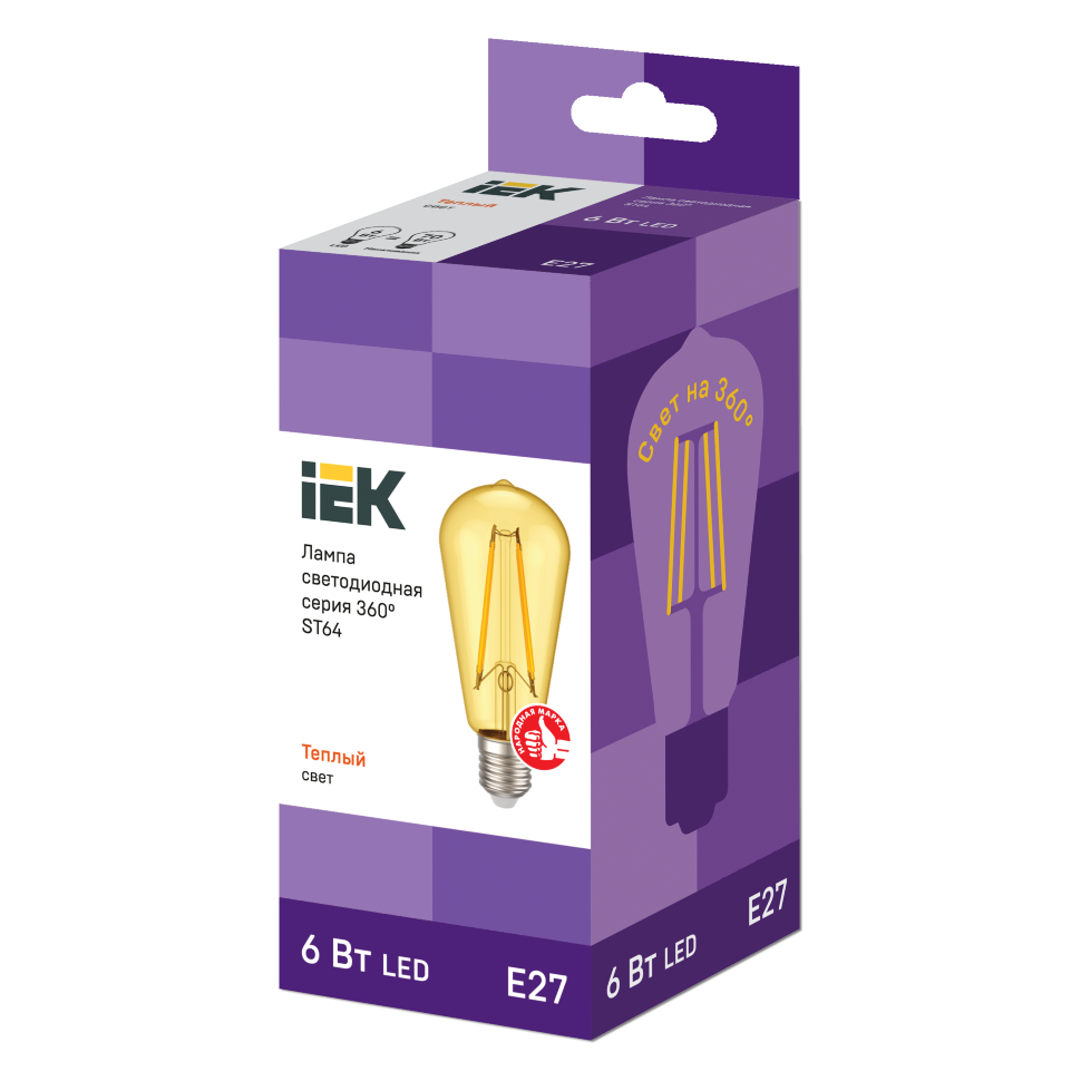 Лампа LED ST64 золото 6Вт 230В 2700К E27 серия 360°, IEK LLF-ST64-6-230-30-E27-CLG (1 шт.) интересное: