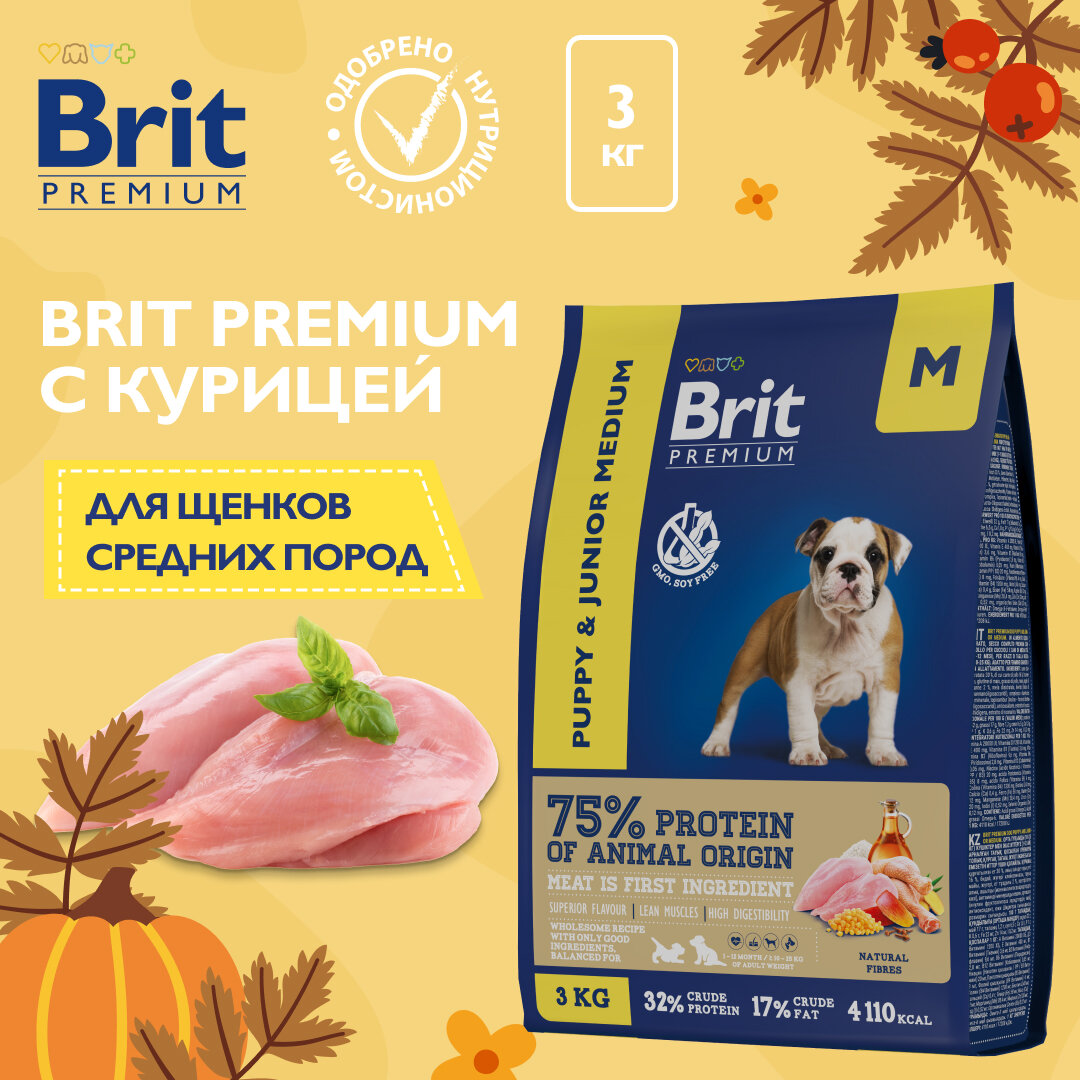 Сухой корм Брит Premium Dog Puppy and Junior Medium с курицейкурицей для щенков и молодых собак 3 кг