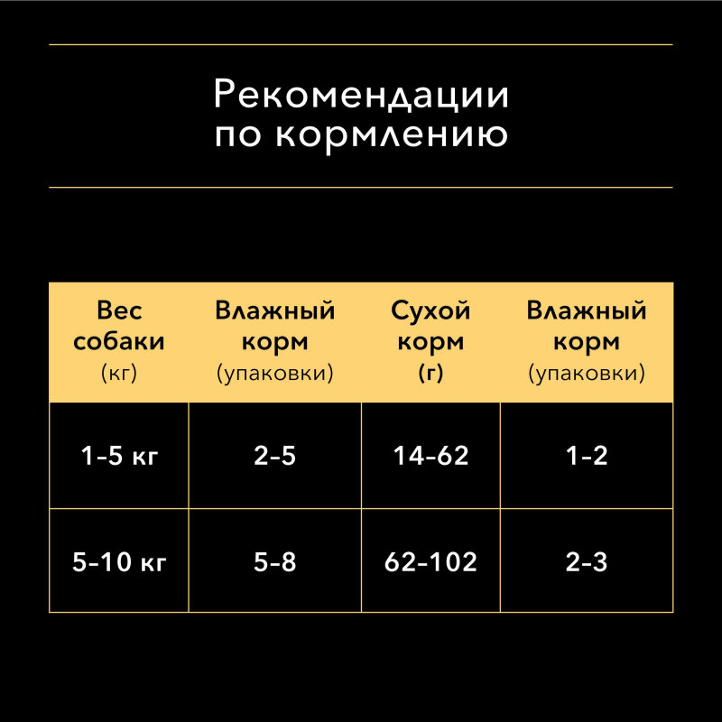 | Дозировка | Рекомендуемую суточную порцию можно разделить на 2-3 приема кормления (см. таблицу на упаковке или на сайте). Индивидуальные потребности в питании могут отличаться в зависимости от размера, возраста и уровня активности животного. Данные предписания носят исключительно рекомендательный характер. Для достижения оптимального состояния животного может потребоваться изменения рациона. |