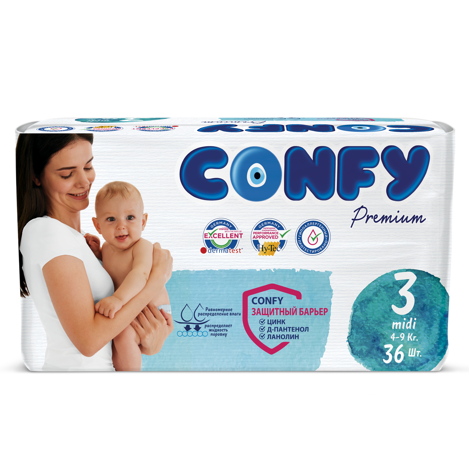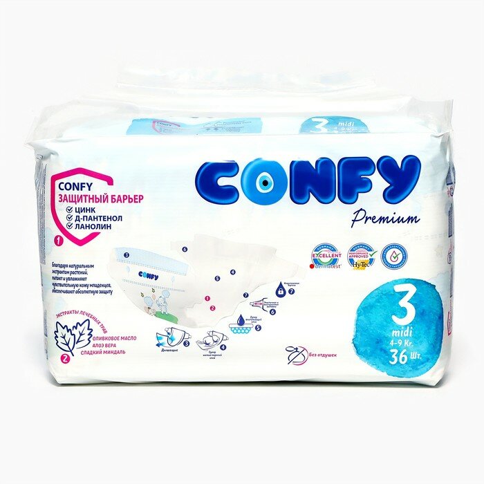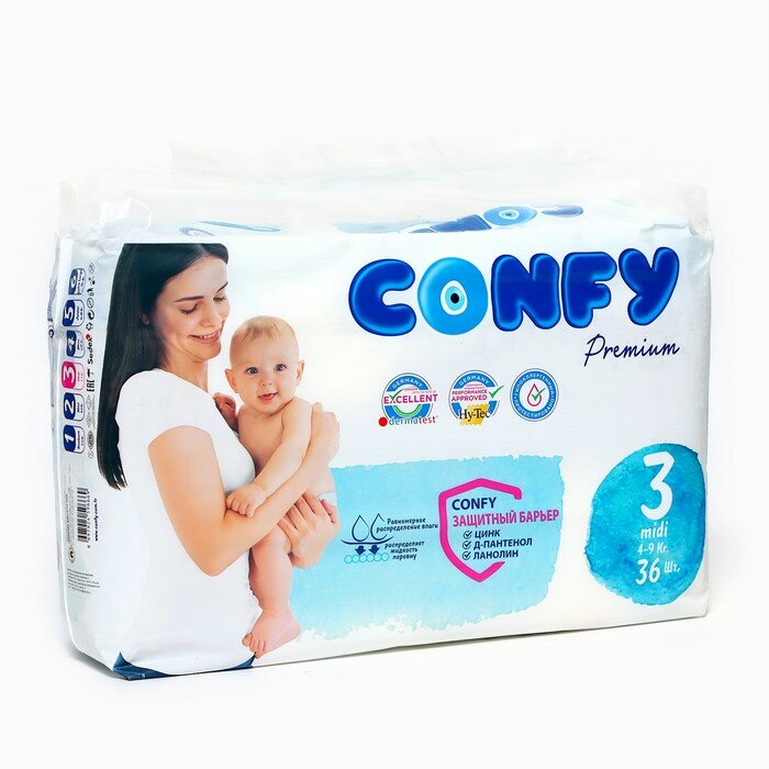 Купить CONFY Подгузники CONFY Premium 4-9 кг (размер 3) 36 шт