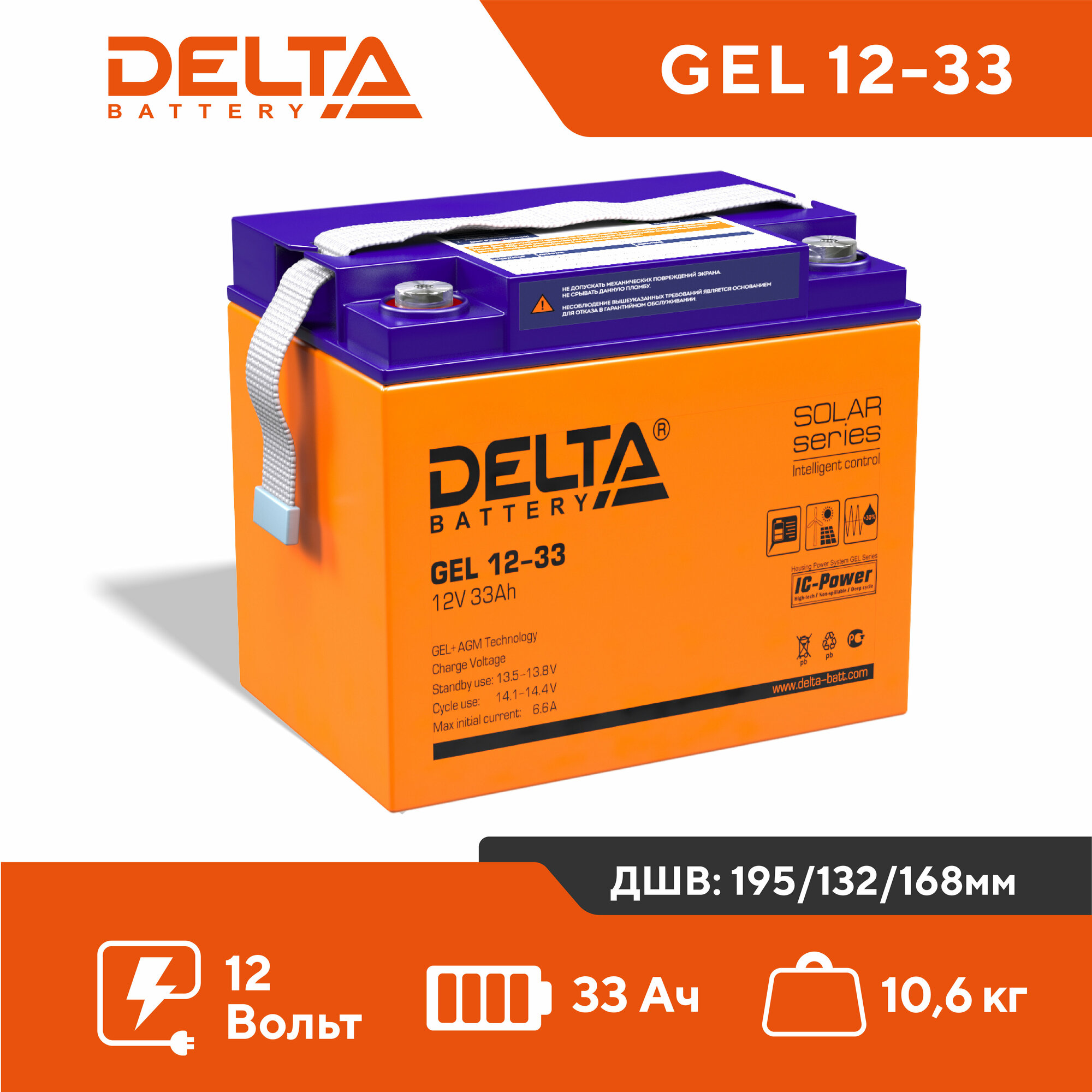 Аккумулятор DELTA Battery GEL 12-33 12v 33Ah гелевый АКБ для ИБП, насоса, котла, эхолота, кассы, сигнализации