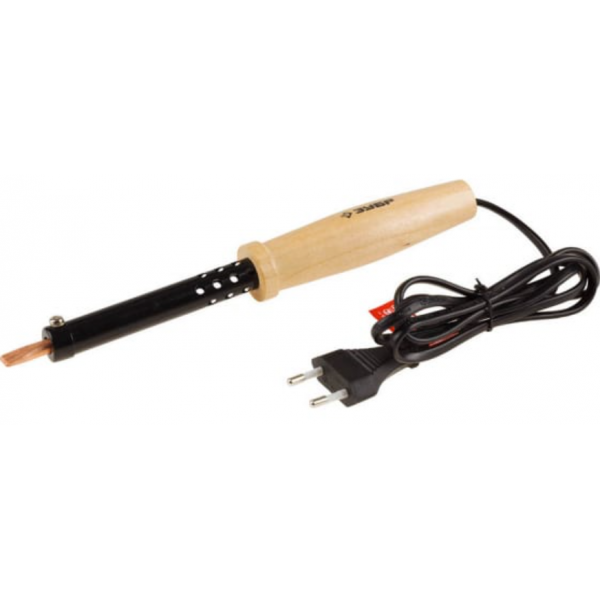 Электропаяльник ЗУБР 25Вт, с деревянной рукояткой, клин